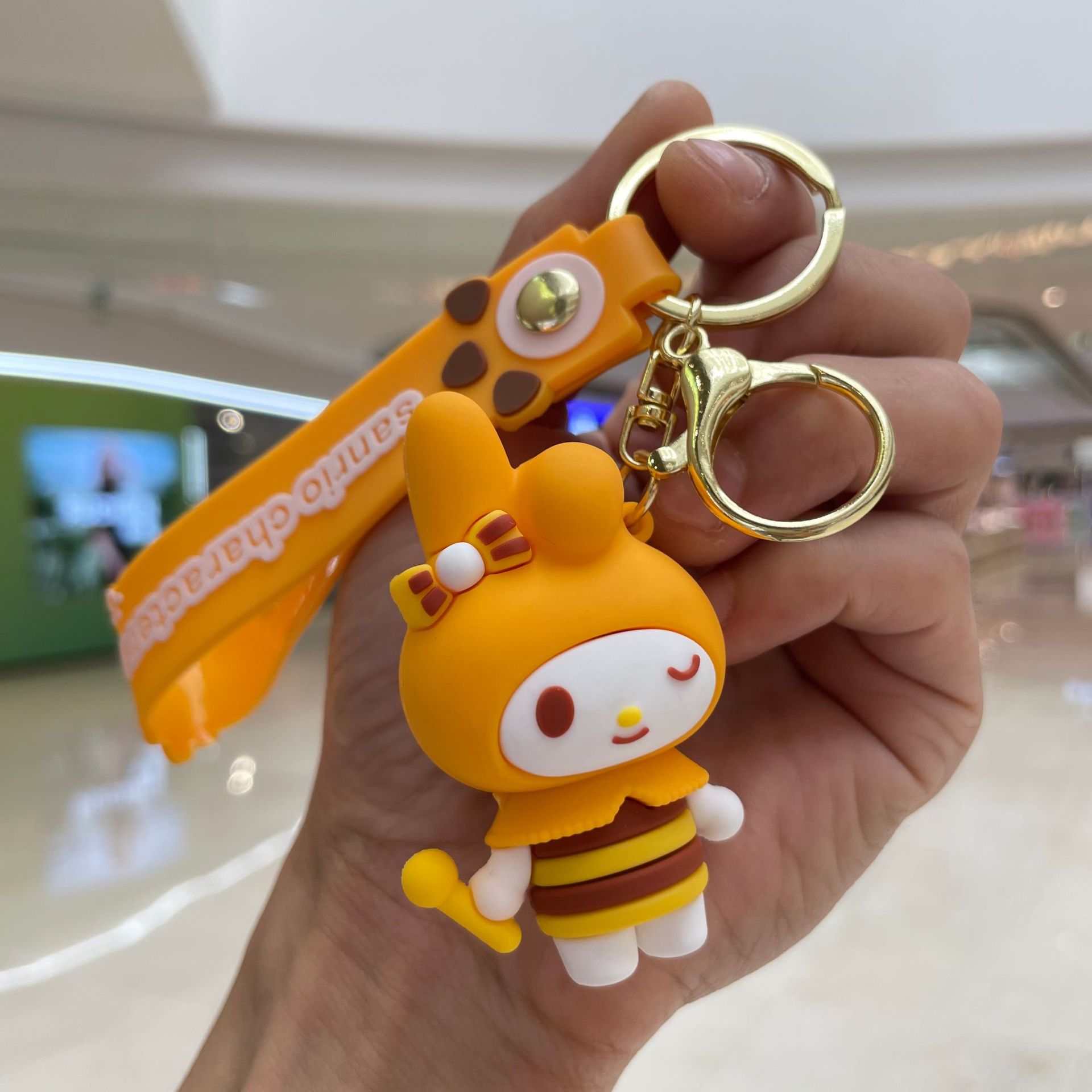 Bee Sanrio 키 체인 Kulomi 인형 귀여운 학교 가방 펜던트 자동차 키 체인 교수형 작은 선물