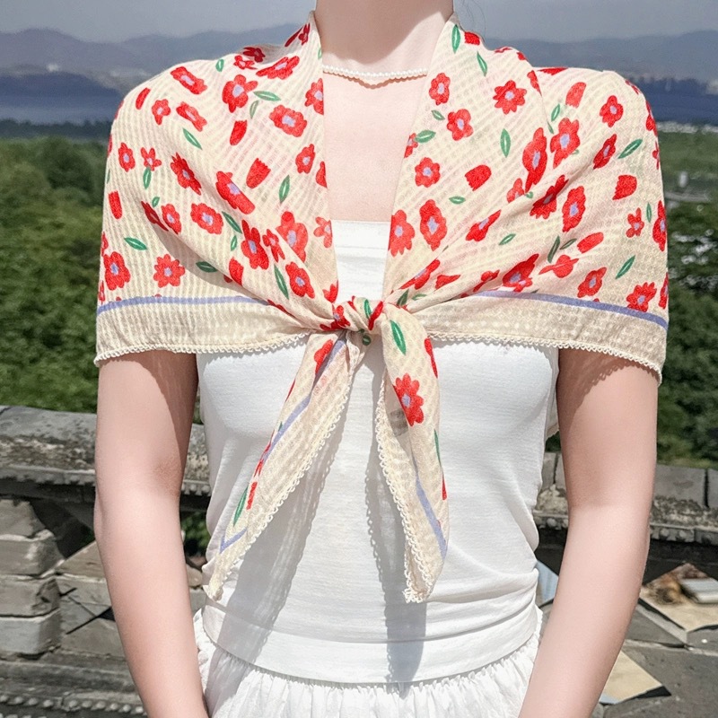 对折后可以做头巾戴起来显脸小,瘦瘦的小姐姐还能做抹胸穿,做领巾、绑包包也很绝~