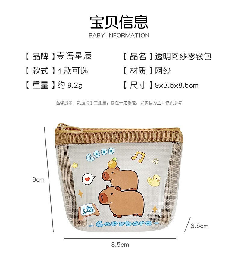 카피 발라 메쉬 동전 지갑 귀여운 카피 바라 동전 가방 카피 바라 휴대용 카피 바라 미니 저장 가방 지갑스토어 가기