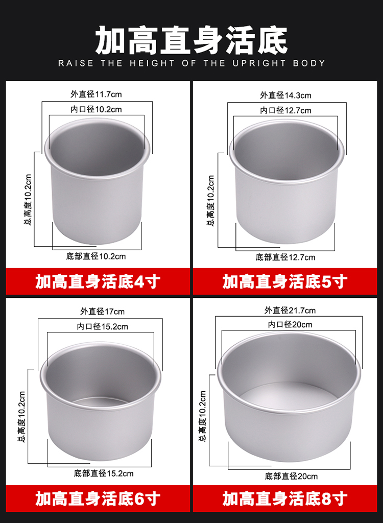 A5L 베이킹 금형 4 인치 5 인치 높은 생활 바닥 금형 높은 스폰지 천사 금형 스트레이트 바디 쉬폰 금형 양극 계란스토어 가기