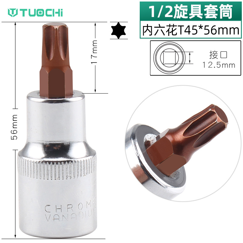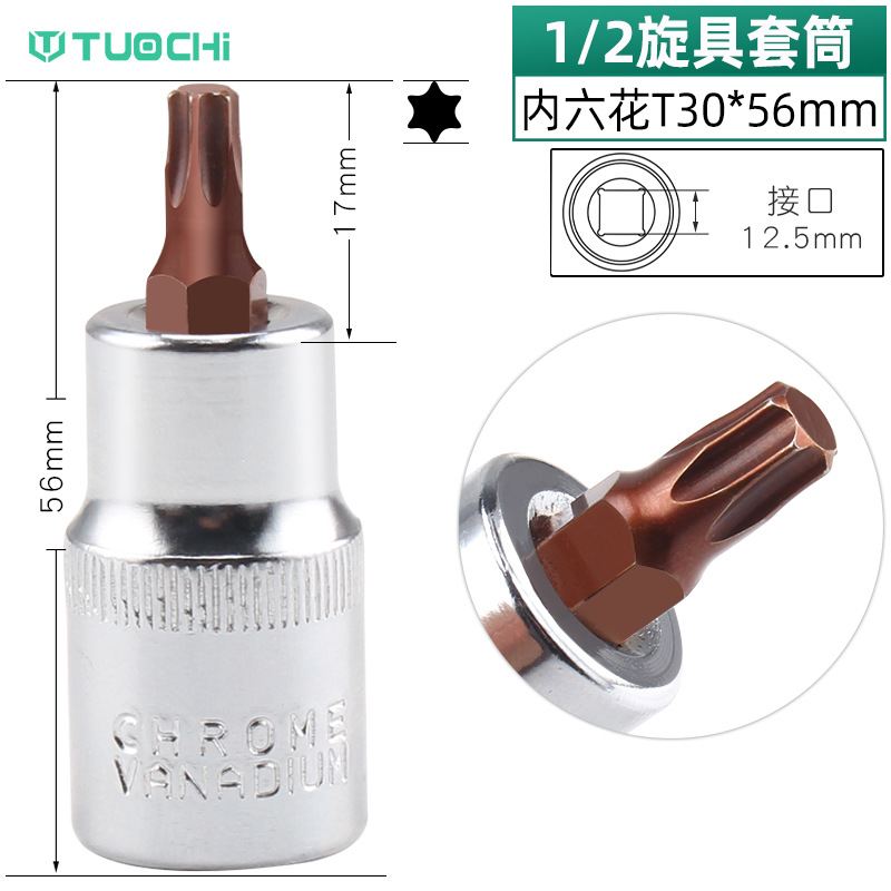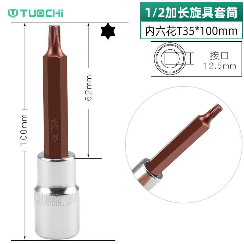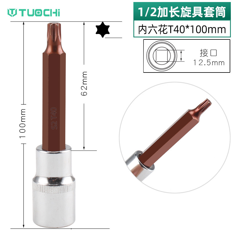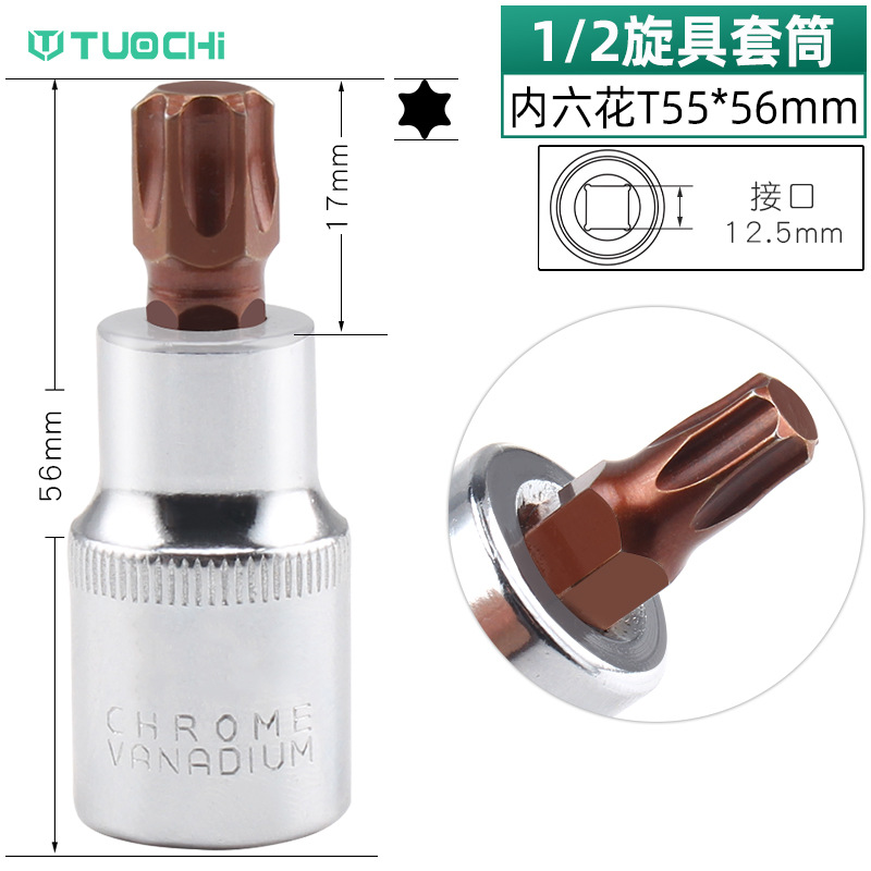 1/2 내부 6 꽃 압력 배치 슬리브 길쭉한 매화 배치 헤드 S2 전기 렌치 스크루 드라이버 긴 압력 배치 헤드 스크루 드라이버 헤드스토어 가기
