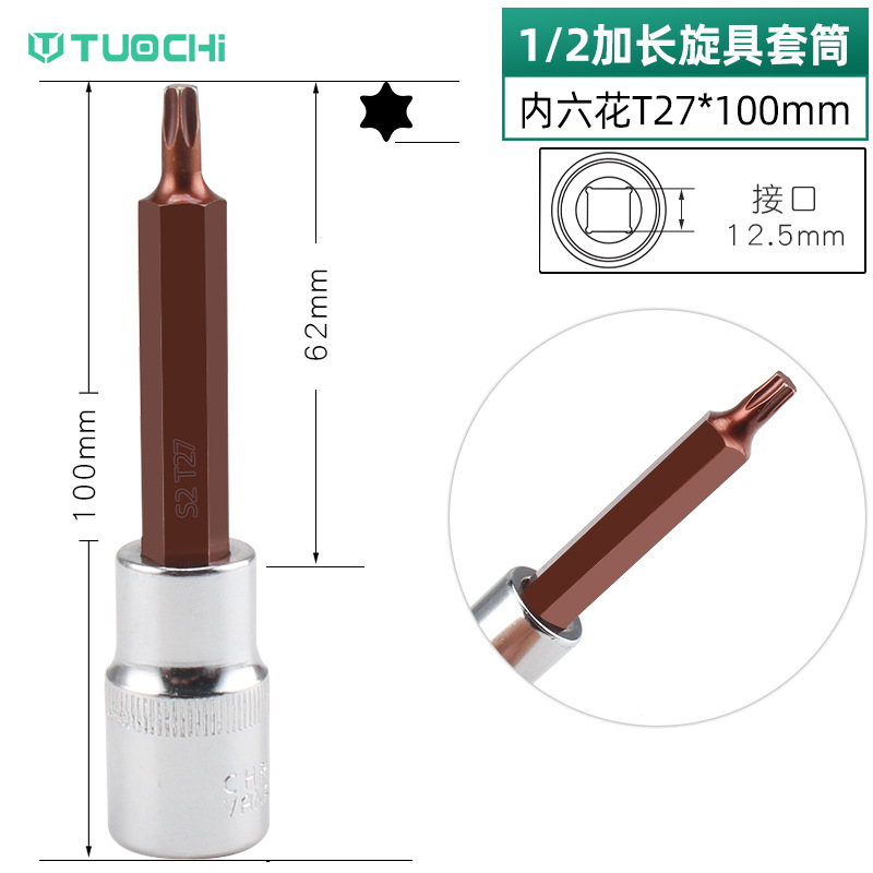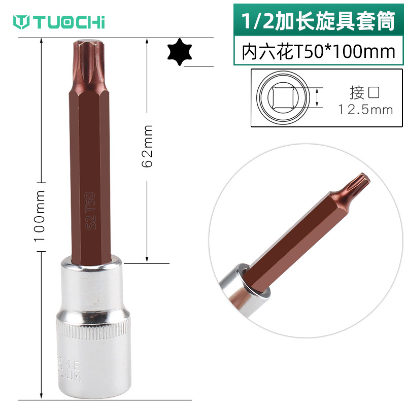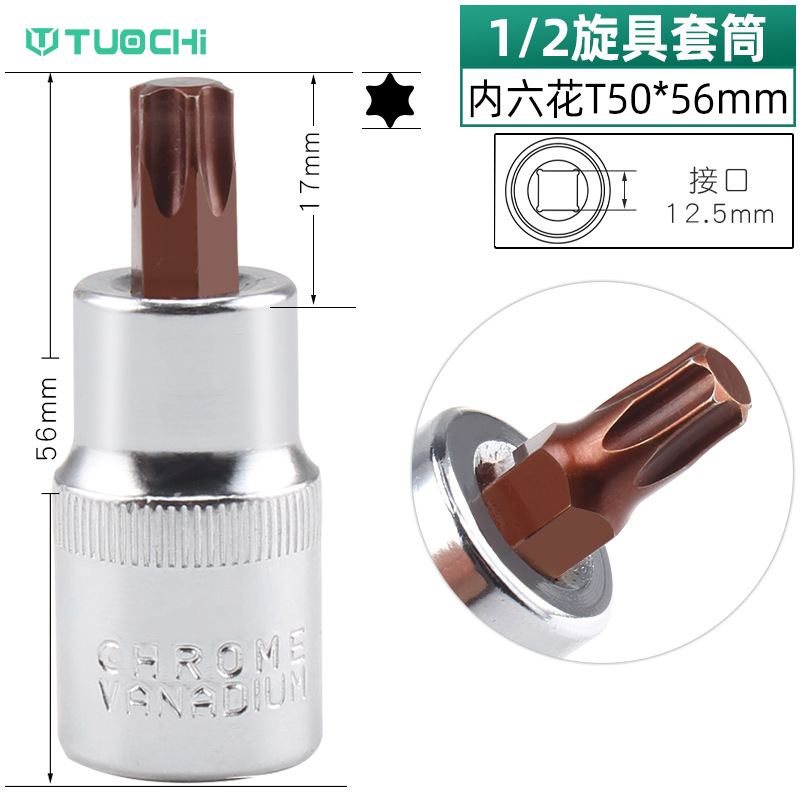 1/2 내부 6 꽃 압력 배치 슬리브 길쭉한 매화 배치 헤드 S2 전기 렌치 스크루 드라이버 긴 압력 배치 헤드 스크루 드라이버 헤드