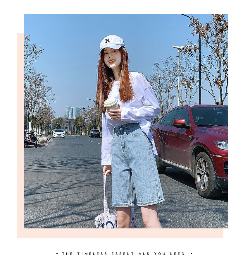 높은 허리 데님 반바지 여성의 2024 새로운 여름 얇은 직선 바지 느슨한 슬리밍 넓은 다리 바지스토어 가기
