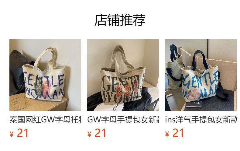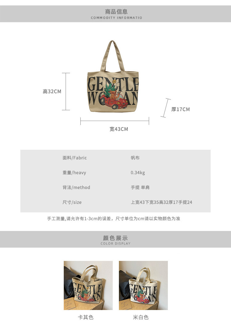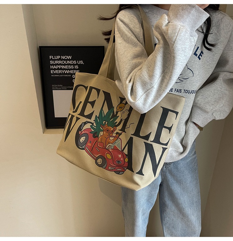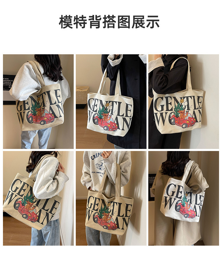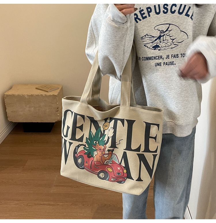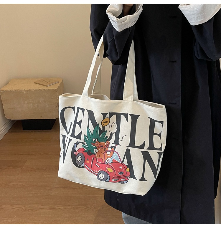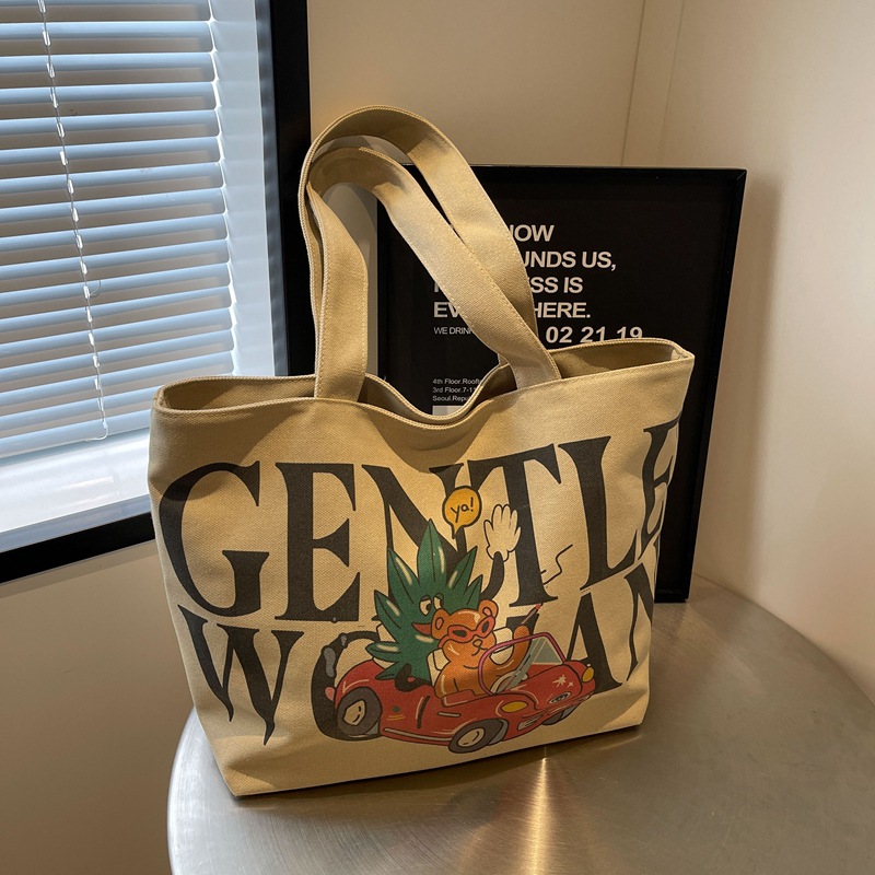 태국 젠틀 우먼 편지 토트 백 여성의 새로운 도착 대용량 패션 캔버스 핸드백 트렌디 쇼핑백스토어 가기
