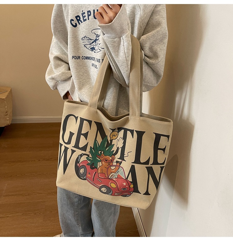 태국 젠틀 우먼 편지 토트 백 여성의 새로운 도착 대용량 패션 캔버스 핸드백 트렌디 쇼핑백
