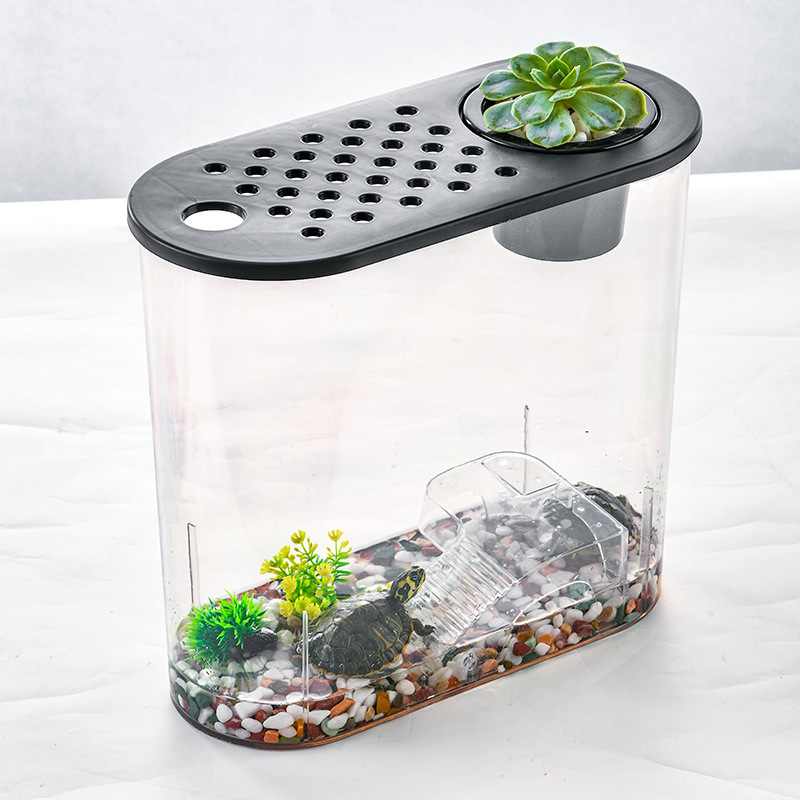 데스크탑 물고기 탱크 HD 투명 거북이 탱크 플라스틱 마이크로 조경 사무실 생태 탱크 조경 장식품 게으른 수족관