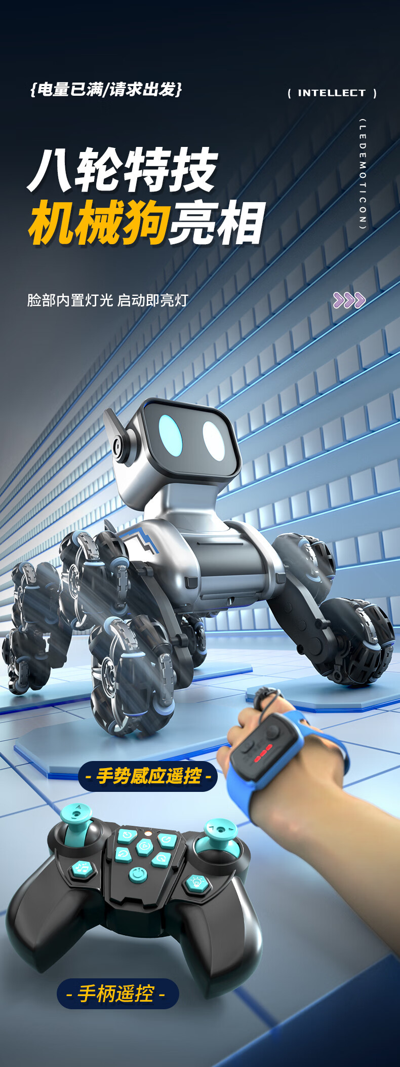• 28cm 원격 제어 로봇 개 [8 라운드 및 8 드라이브] 단일 제어