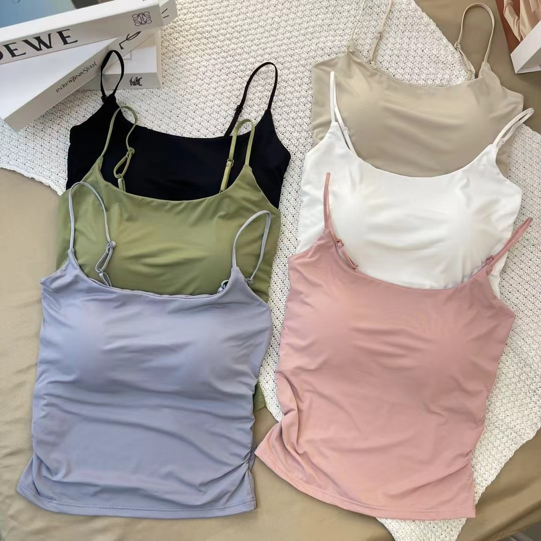 핫 걸스, 비 마킹 아이스 실크 카미 솔 여름 얇은 통기성 슬림 핏 아우터 웨어 속옷 여성용 가슴 패드스토어 가기