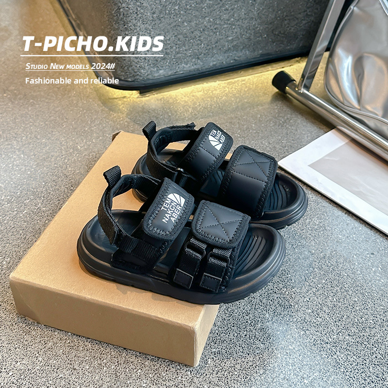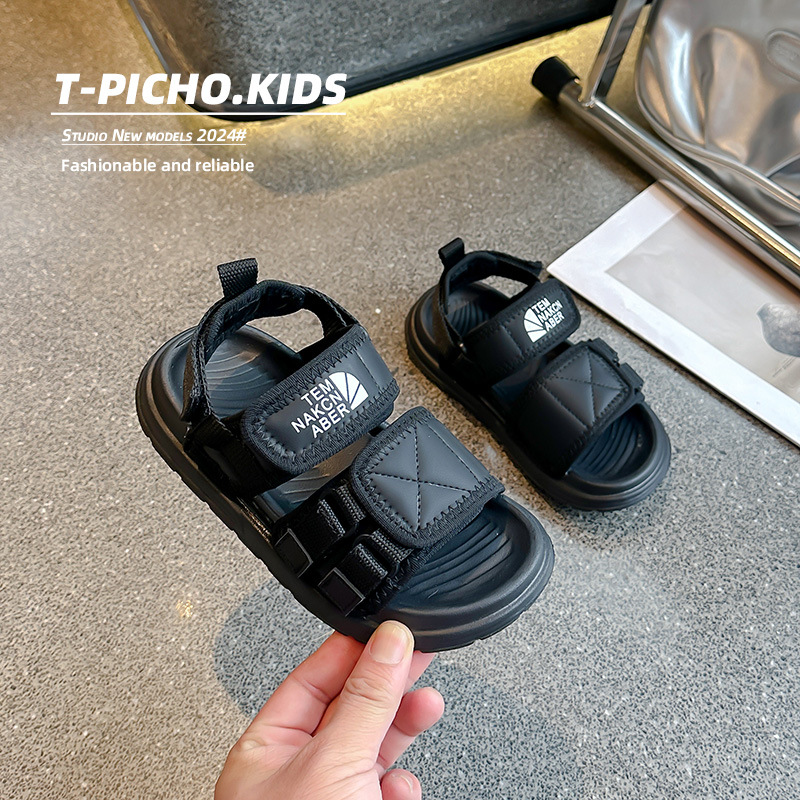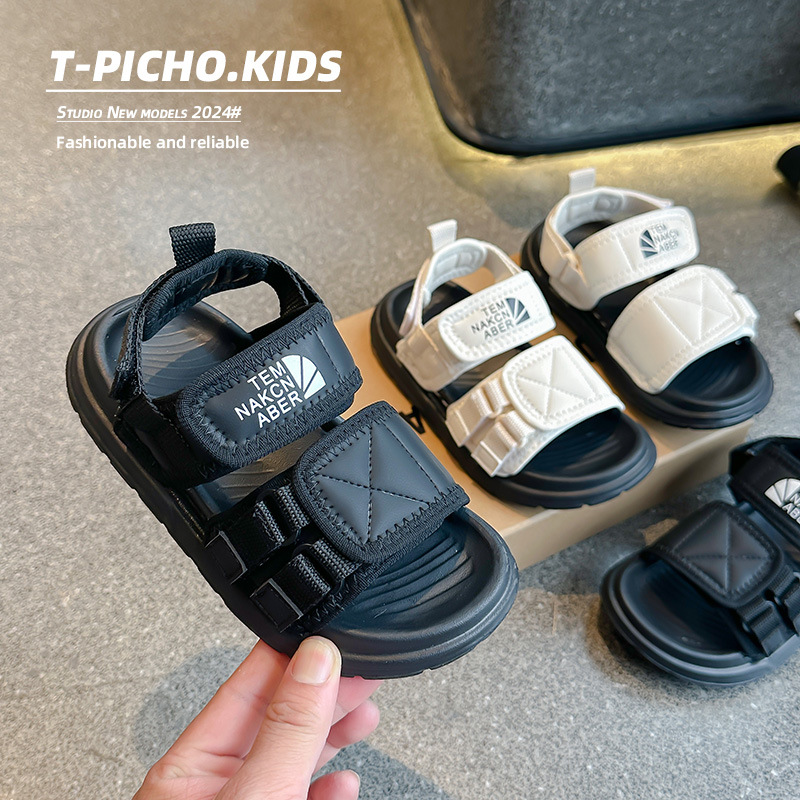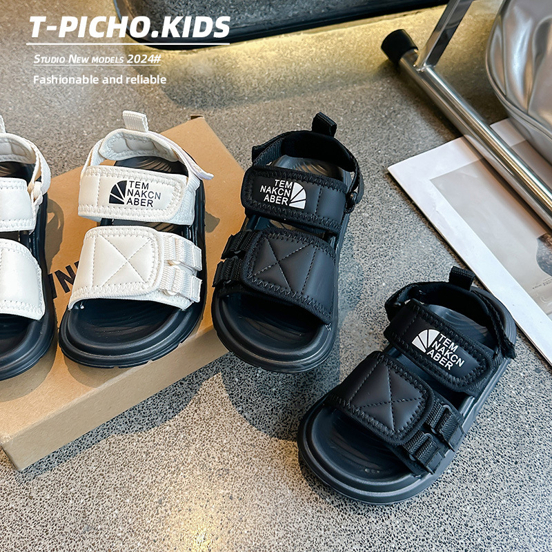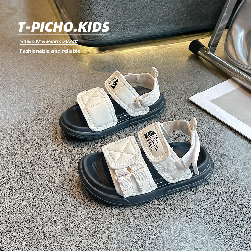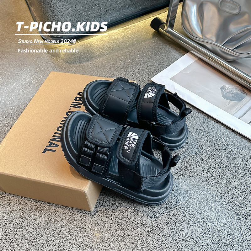 어린이 신발 소프트 단독 소년 미끄럼 방지 샌들 2024 여름 새 소녀 신발 빅 키즈 캐주얼 비치 슈즈