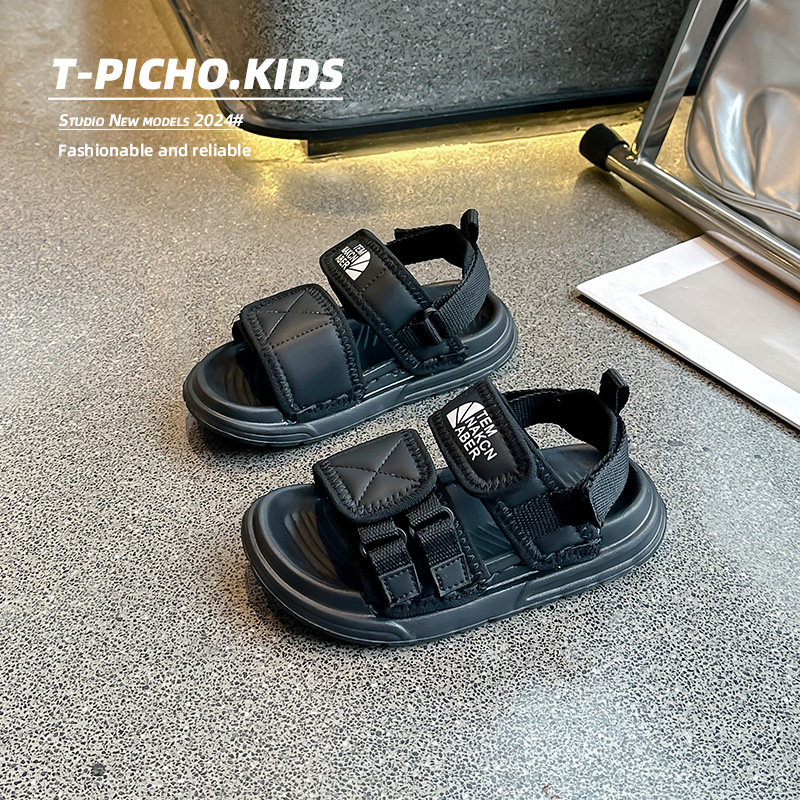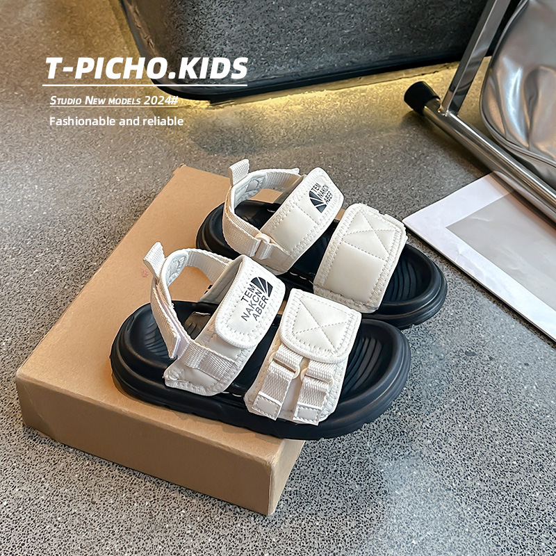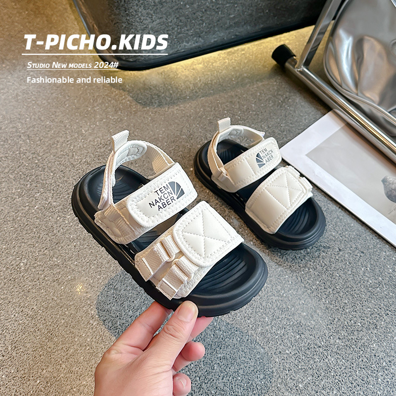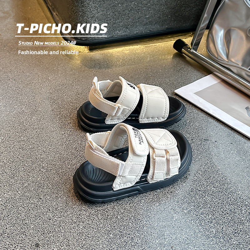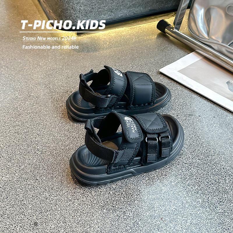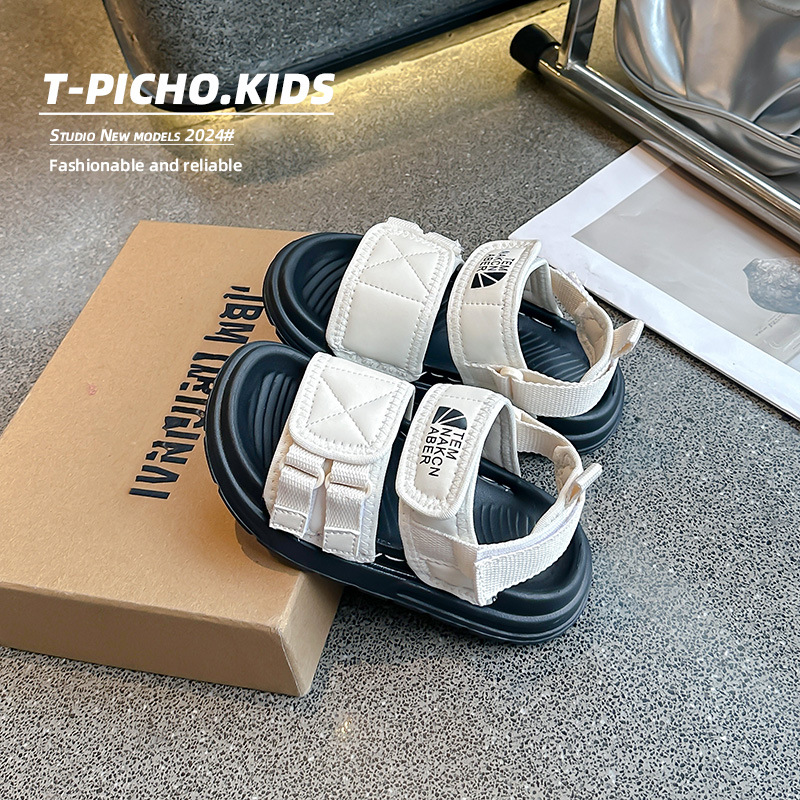 어린이 신발 소프트 단독 소년 미끄럼 방지 샌들 2024 여름 새 소녀 신발 빅 키즈 캐주얼 비치 슈즈