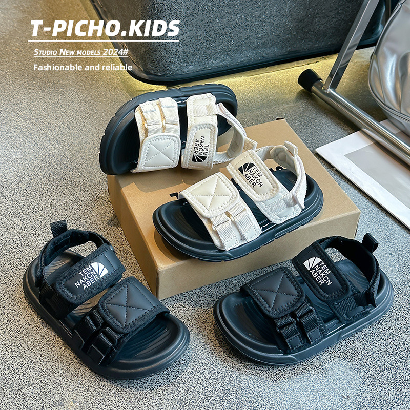 어린이 신발 소프트 단독 소년 미끄럼 방지 샌들 2024 여름 새 소녀 신발 빅 키즈 캐주얼 비치 슈즈스토어 가기