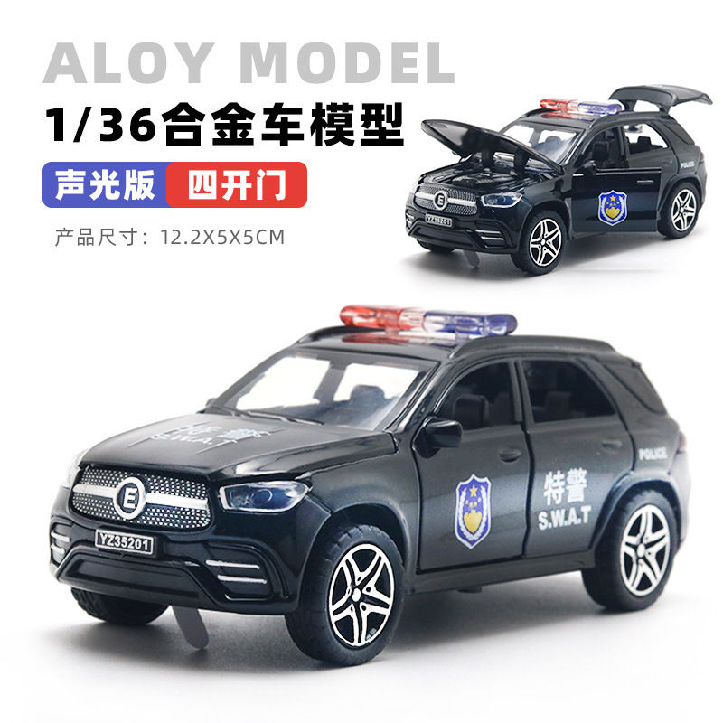 (봉지 포장) 1/36 음향 및 조명 시뮬레이션 합금 장난감 어린이용 후진 모델 경찰차 배송용 소형 자동차 시뮬레이션 경찰차스토어 가기