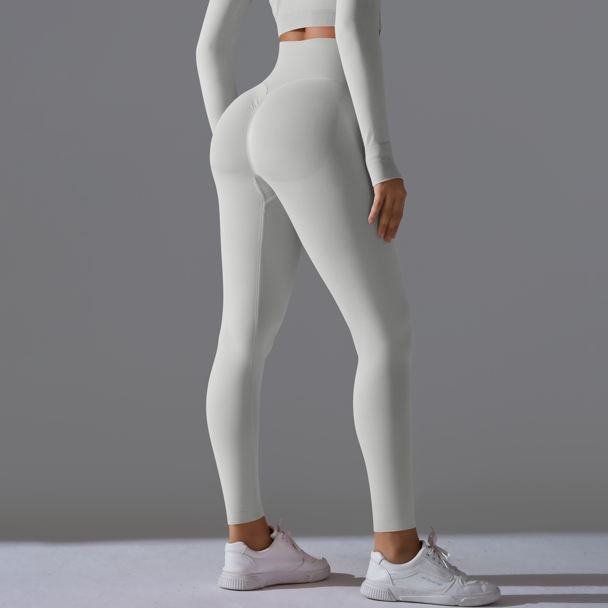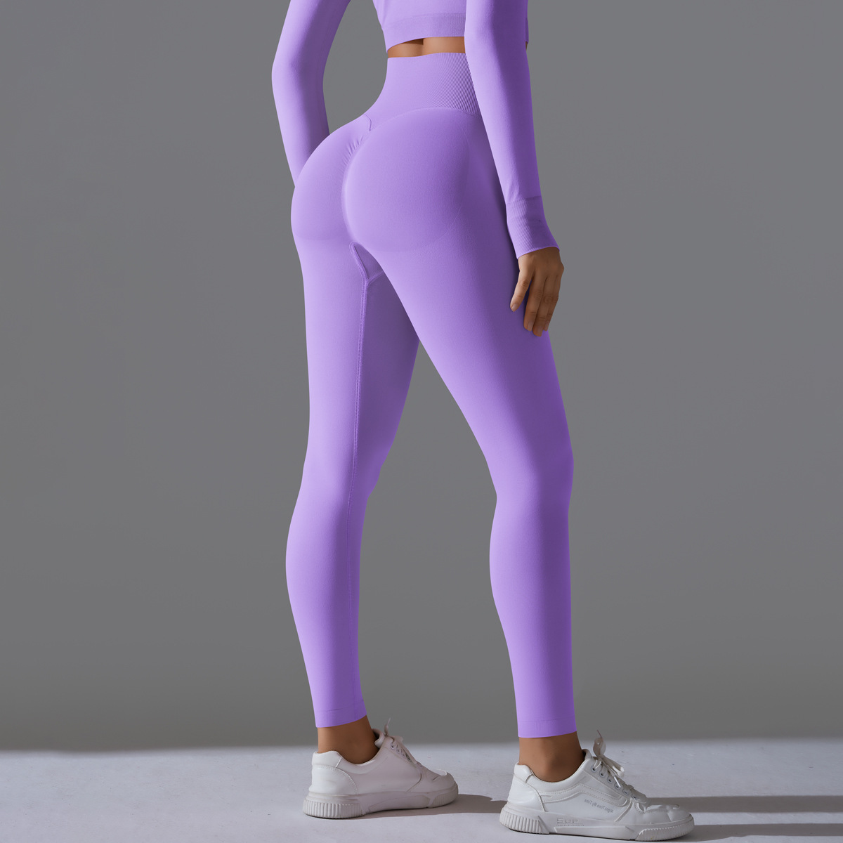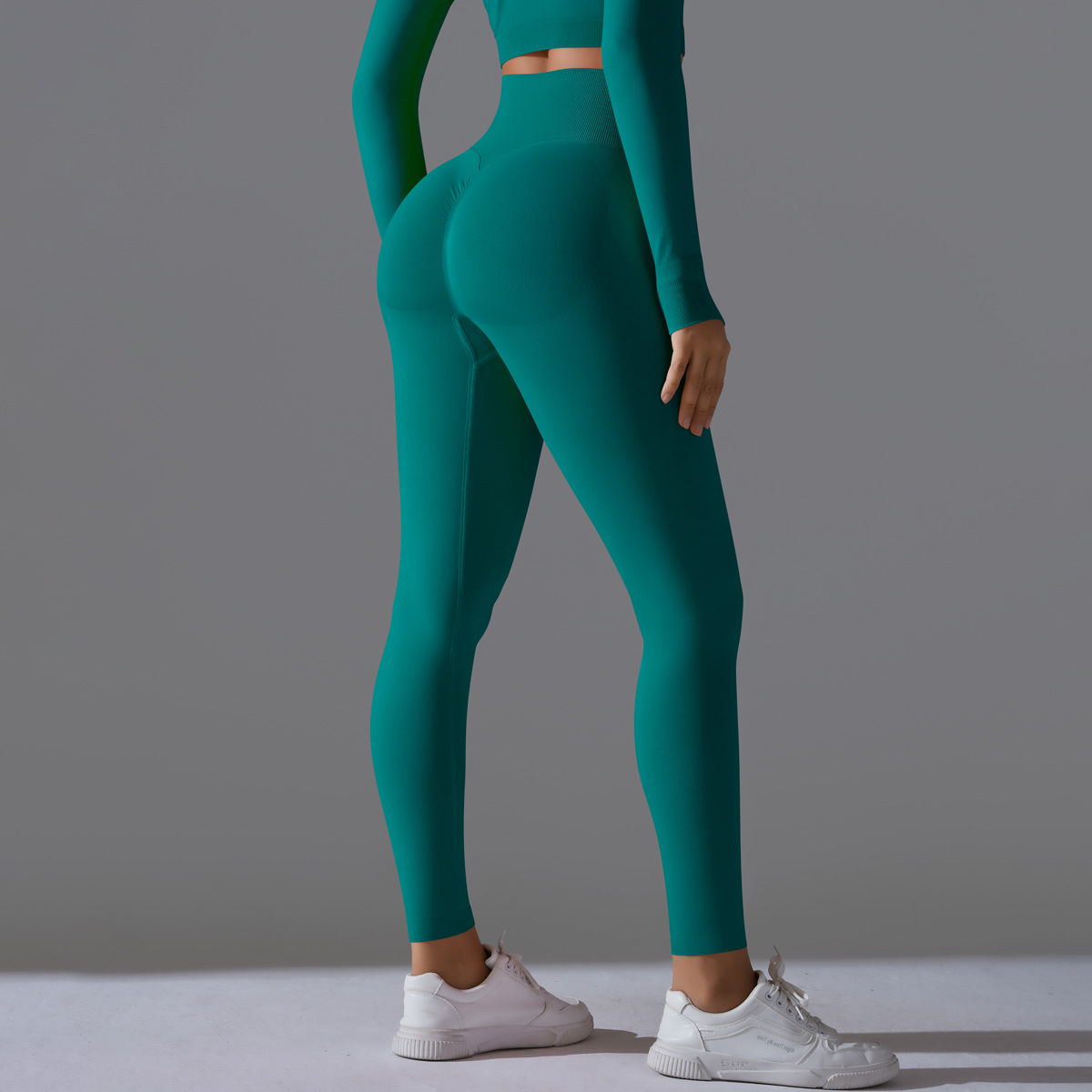 유럽과 미국의 국경 단색 높은 허리 엉덩이 피트니스 바지 여성 스포츠 배꼽 원활한 타이츠 복숭아 엉덩이 요가 바지스토어 가기