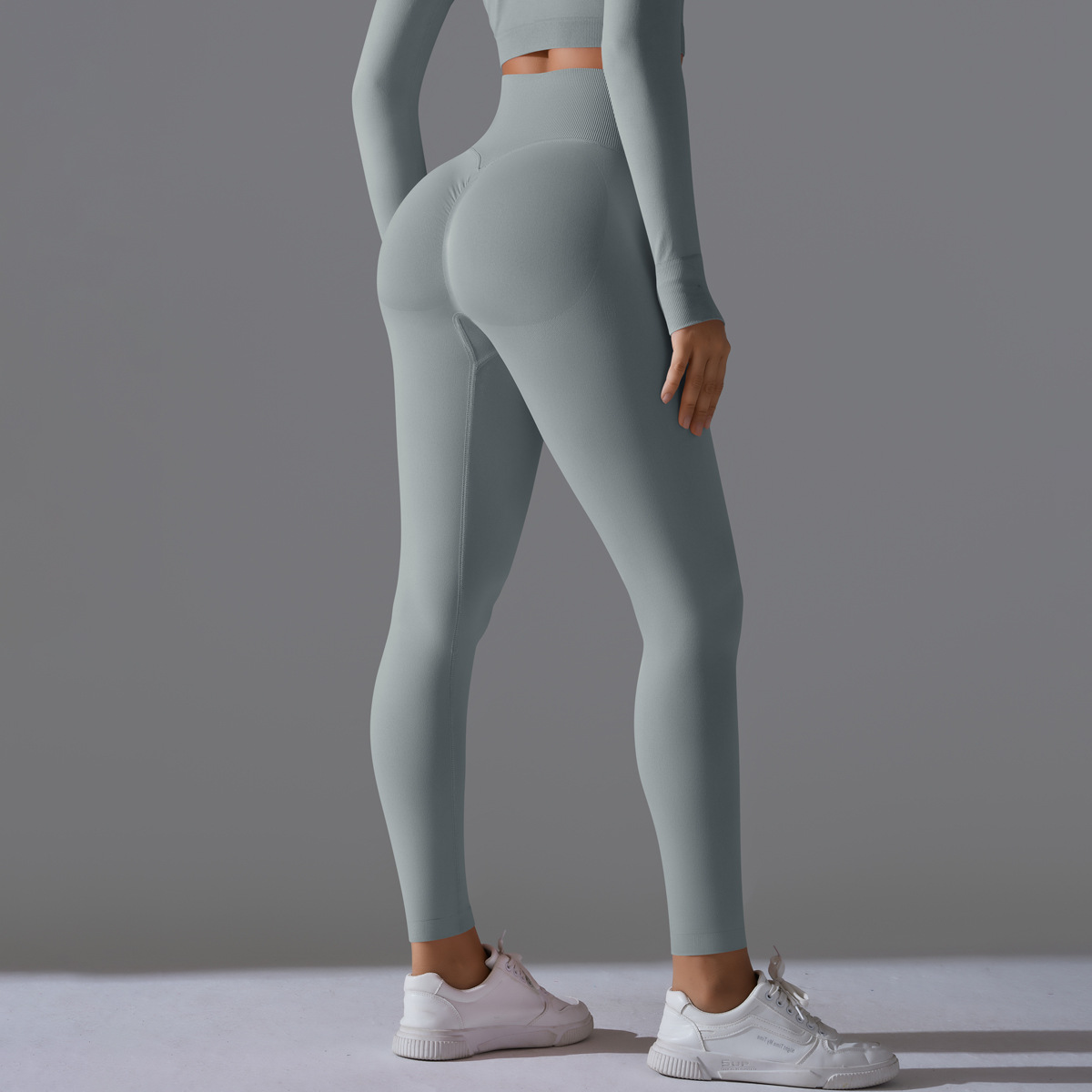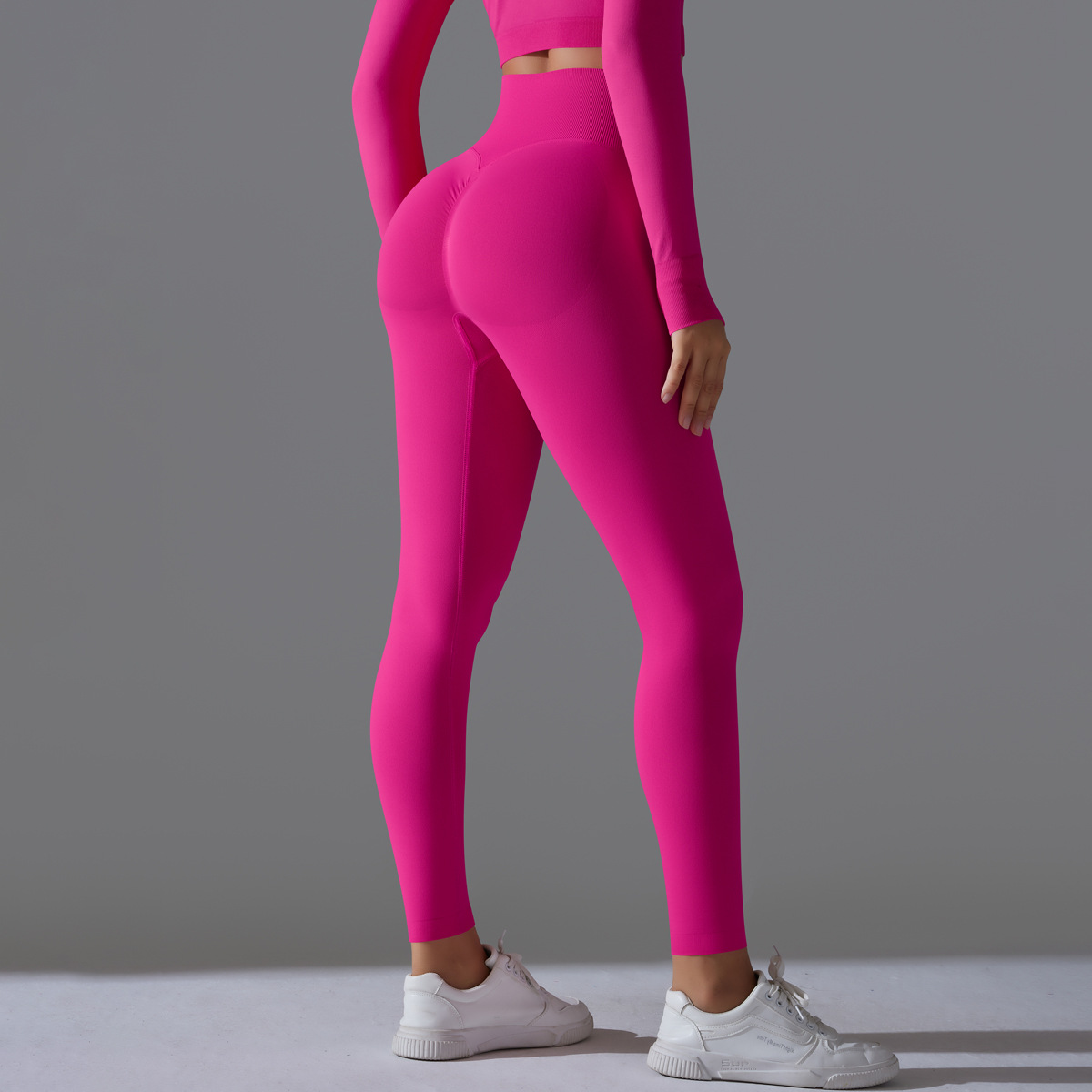 유럽과 미국의 국경 단색 높은 허리 엉덩이 피트니스 바지 여성 스포츠 배꼽 원활한 타이츠 복숭아 엉덩이 요가 바지
