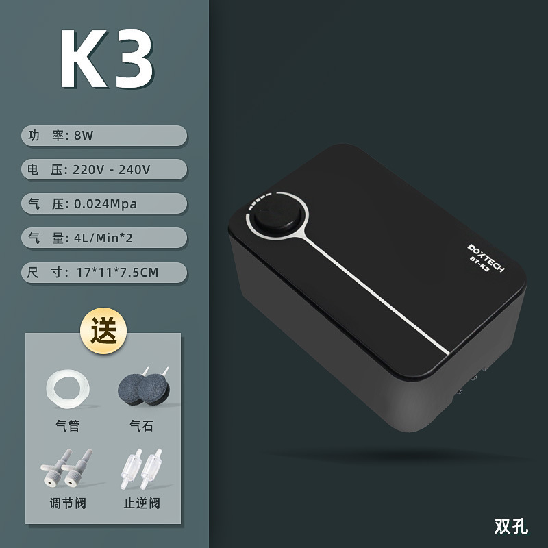 • K3 이중 구멍 8W 자동 공기 펌프 + 공기 케이크 액세서리