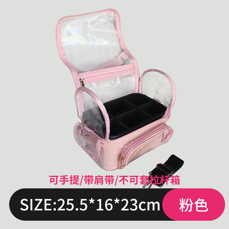 핑크 투명 휴대용 화장품 가방 대형 메이크업 메이크업 아티스트 스토리지 가방 어깨 끈 다기능 파티션 가방스토어 가기
