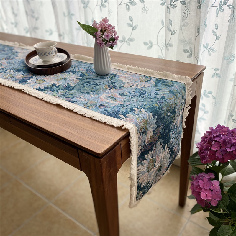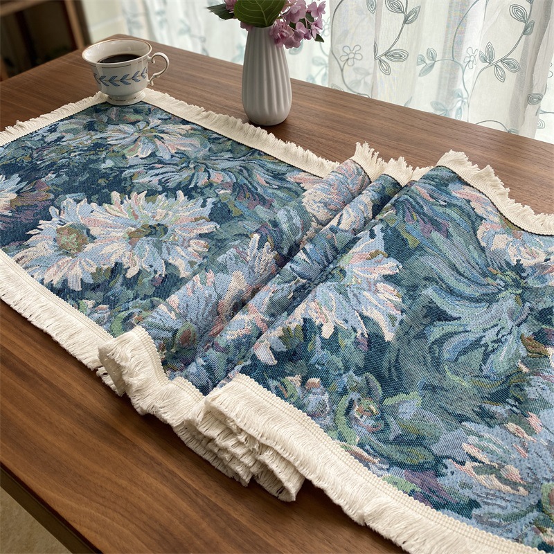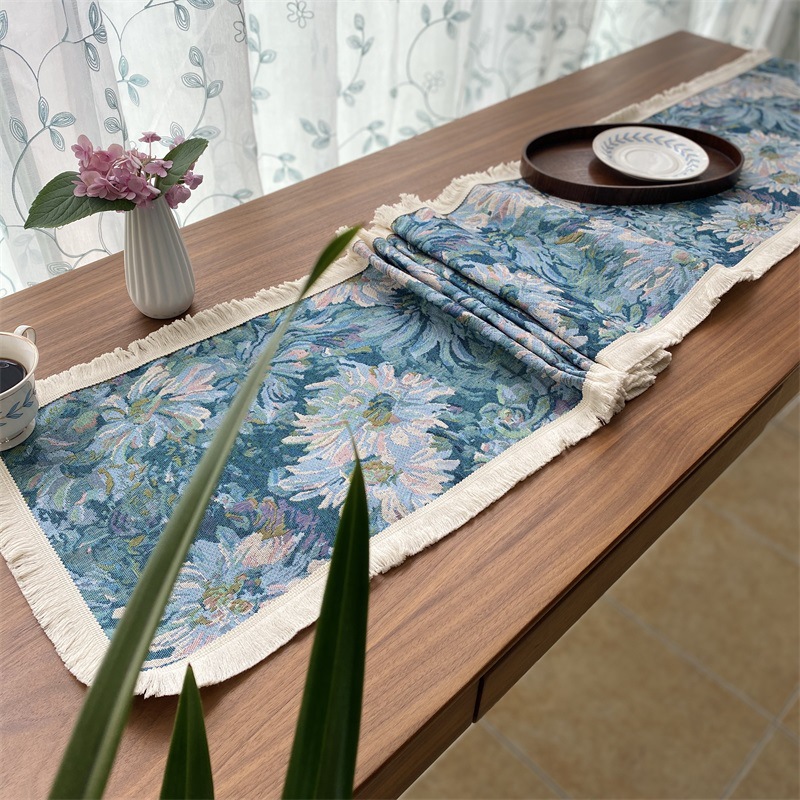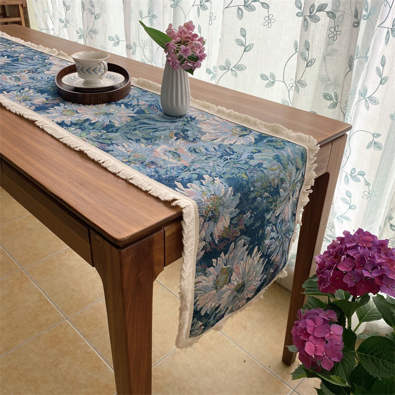 모네 가든 유화 면 및 린넨 테이블 깃발 홈스테이 침대 깃발 커피 숍 서양 레스토랑 의류 매장 긴 테이블 버킷 깃발