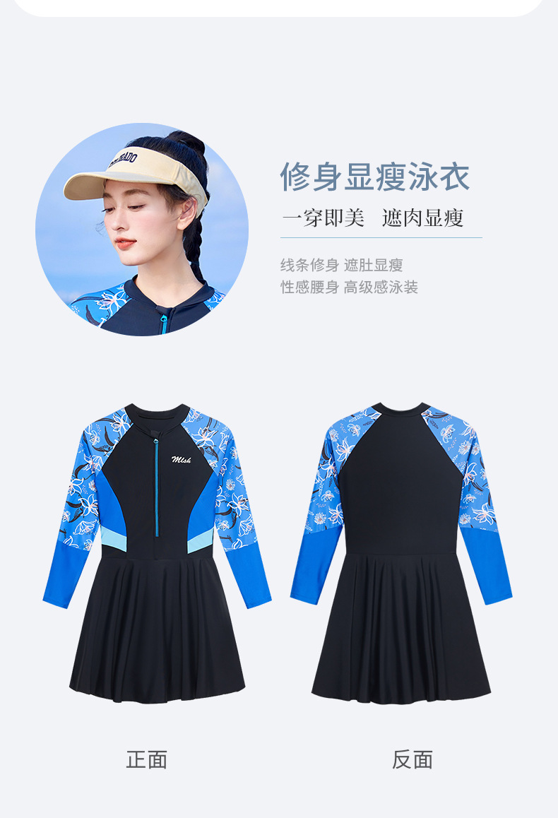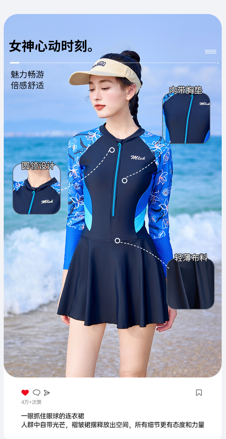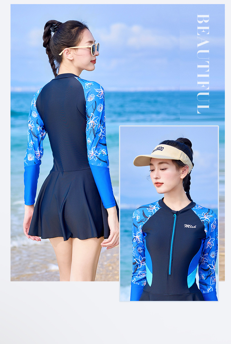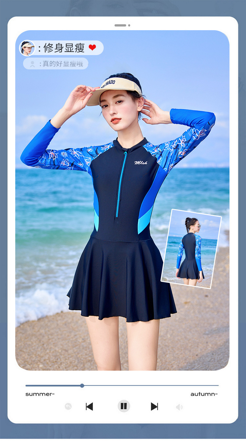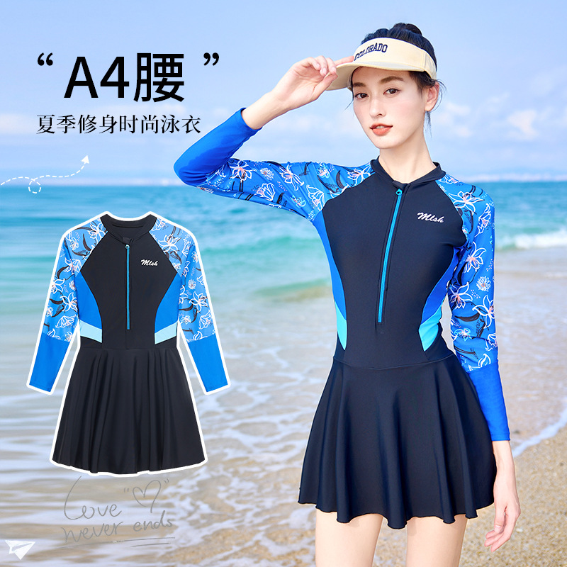 여성 캐주얼 수영복 새로운 보수적으로 긴 소매 양산 서핑 수영복 슬리밍 A-라인 스커트 온천 수영복