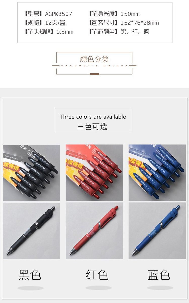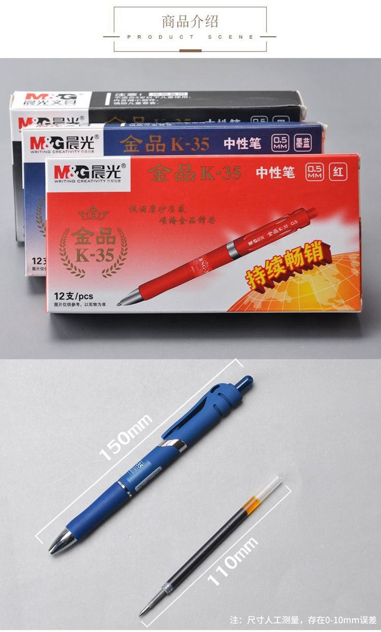 Chenguang Gel 펜 프로스트 골드 K-35 필기 펜 0.5 잉크 블루 블랙 퀵 건조 프레스 오피스 사인 펜 K3507스토어 가기