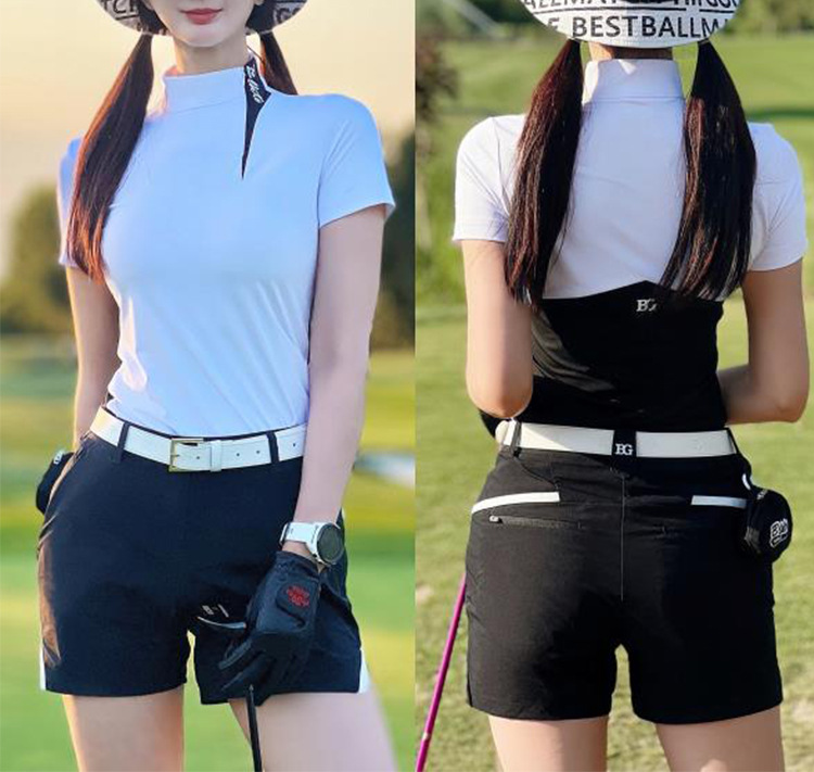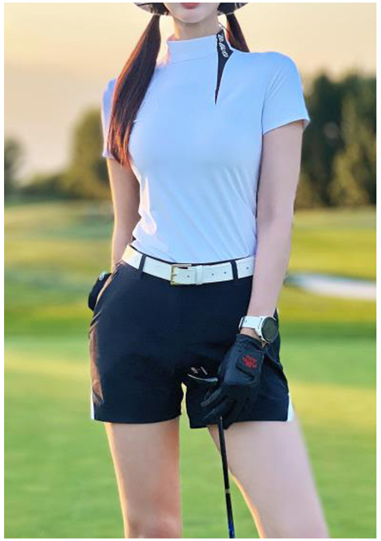 골프 반팔 티셔츠 여자 저지 여름 슬림 핏 슬리밍 스포츠 탑 여자의 빠른 건조 반바지 블랙스토어 가기