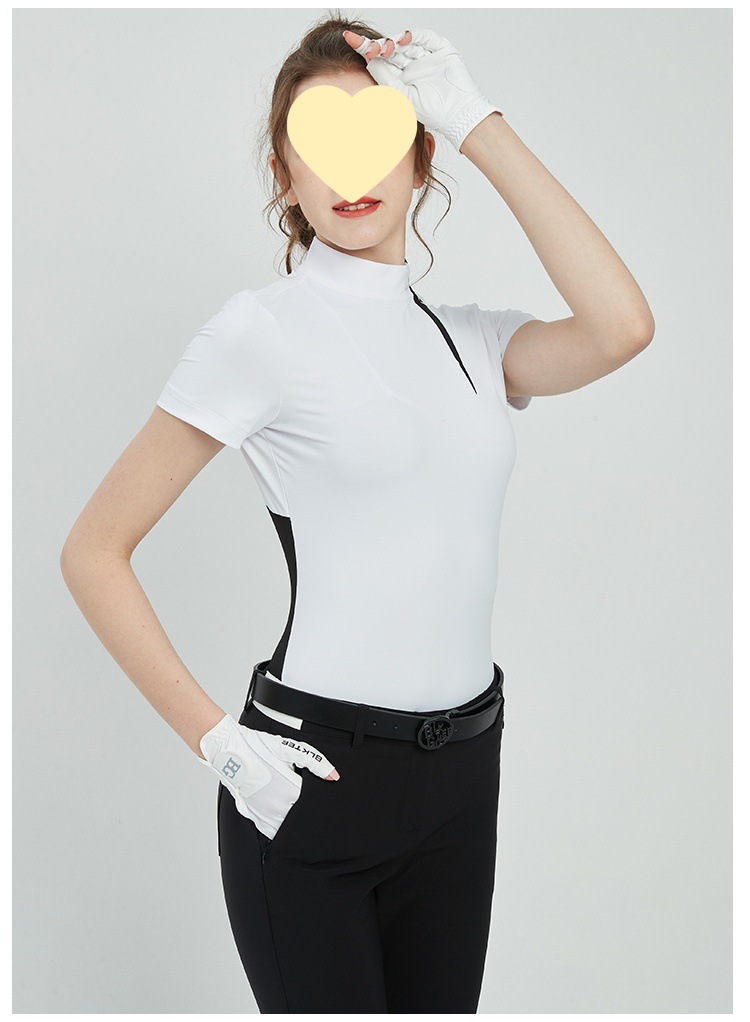 골프 반팔 티셔츠 여자 저지 여름 슬림 핏 슬리밍 스포츠 탑 여자의 빠른 건조 반바지 블랙