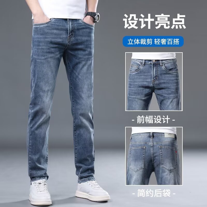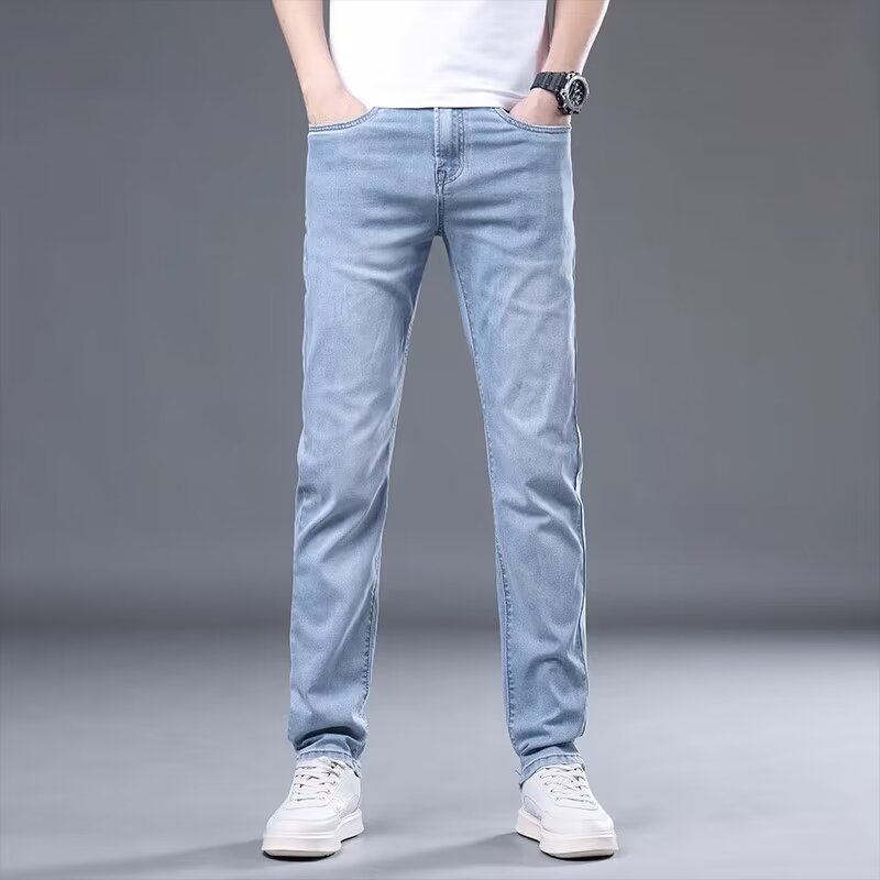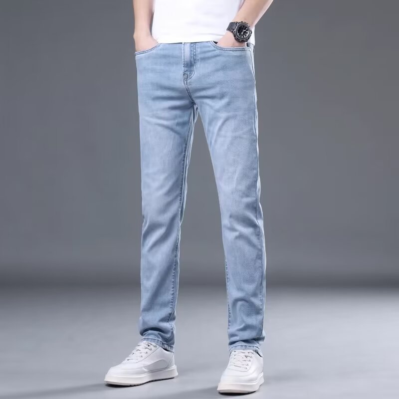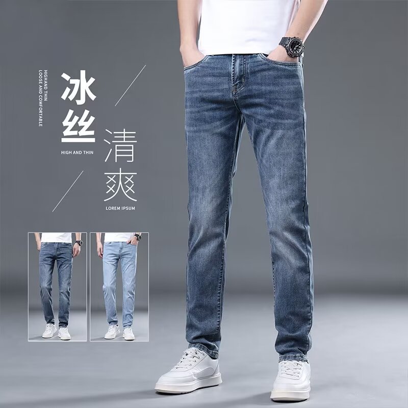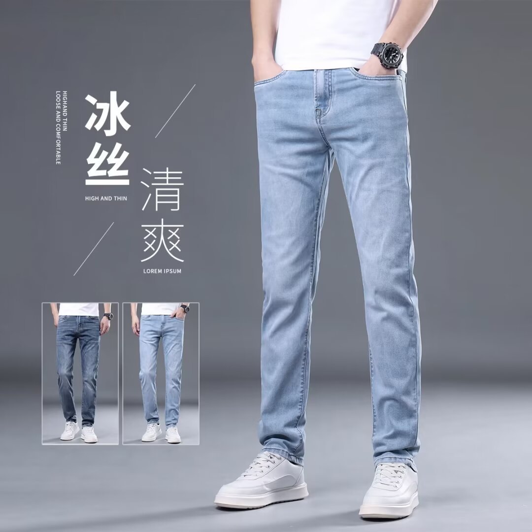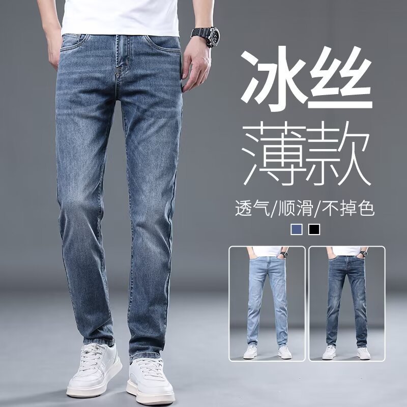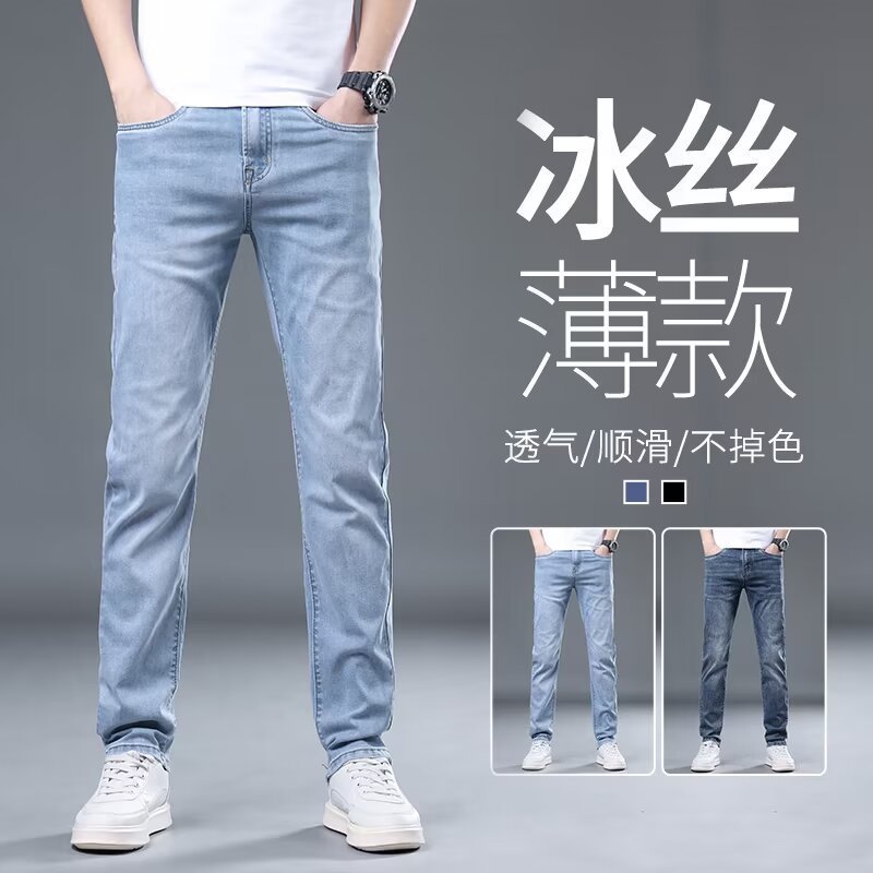 하이 엔드 아이스 실크 청바지 남자 여름 얇은 바지 남자 스트레이트 남자 바지 스트레치 캐주얼 바지 남자 여름스토어 가기