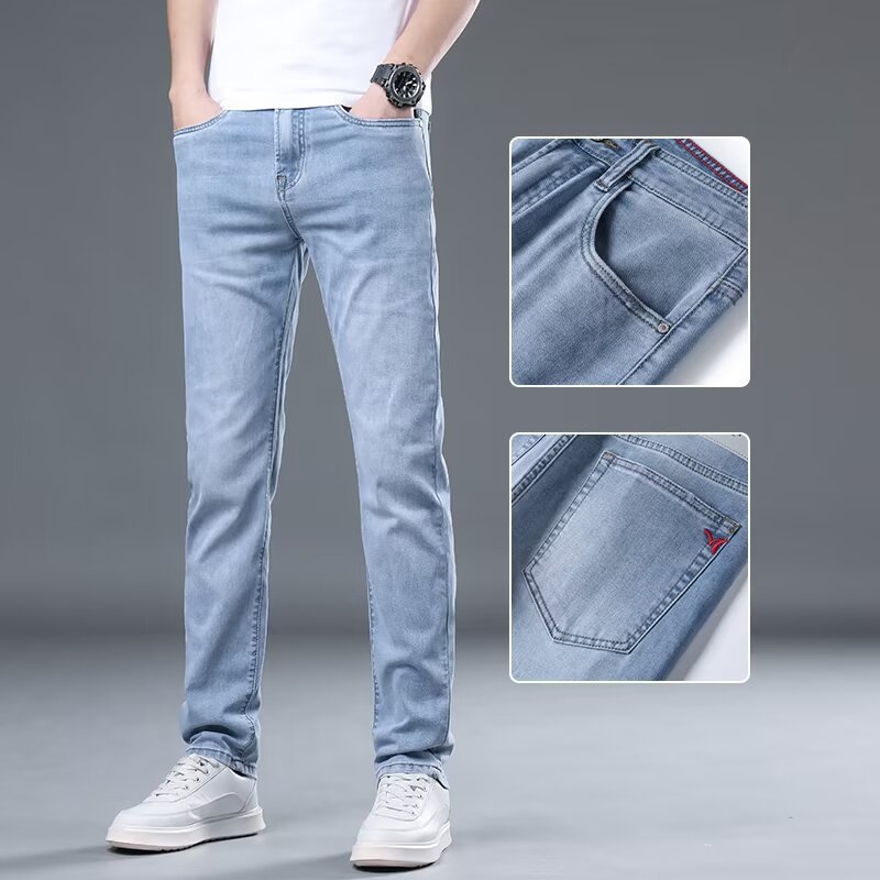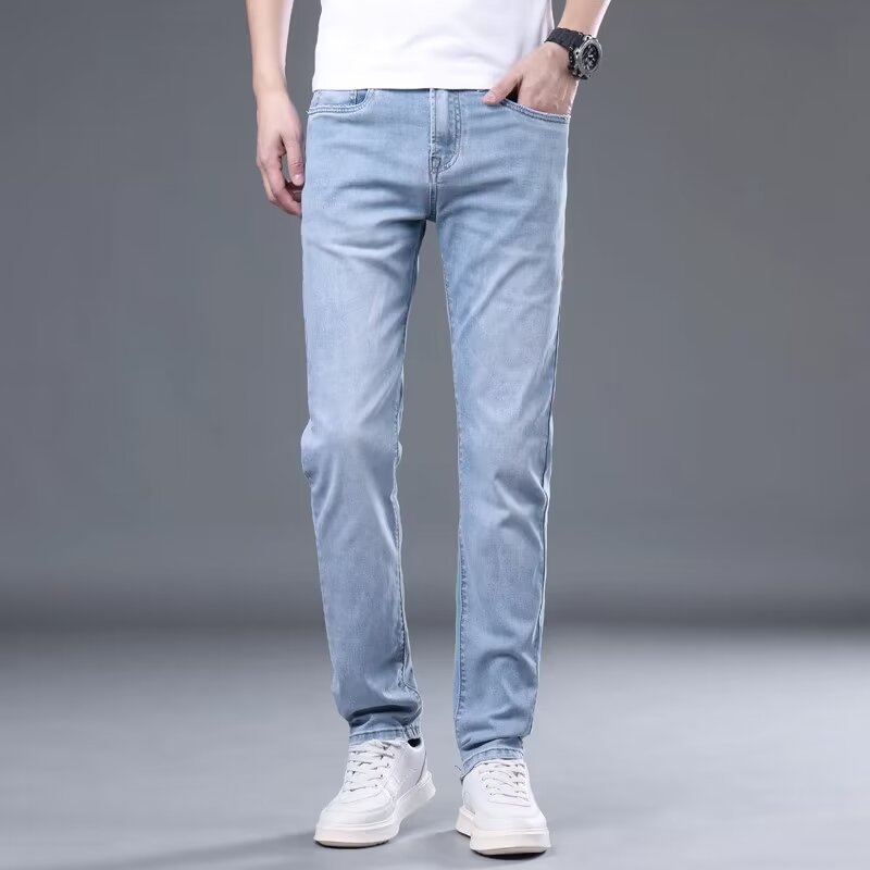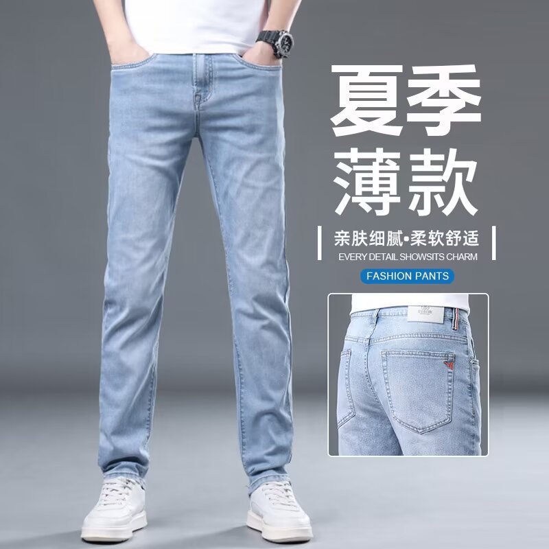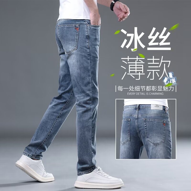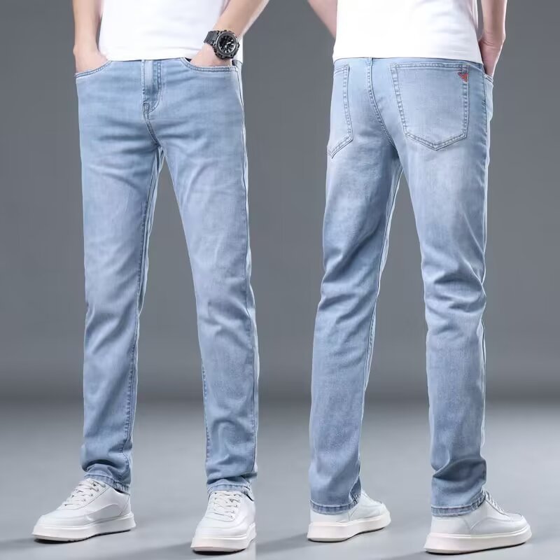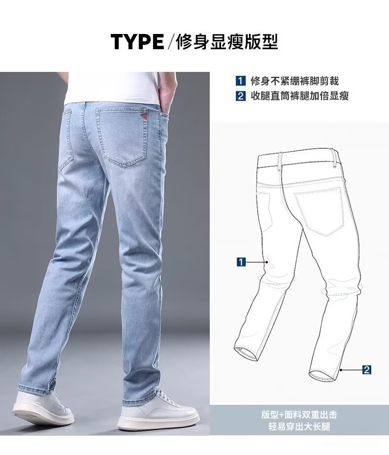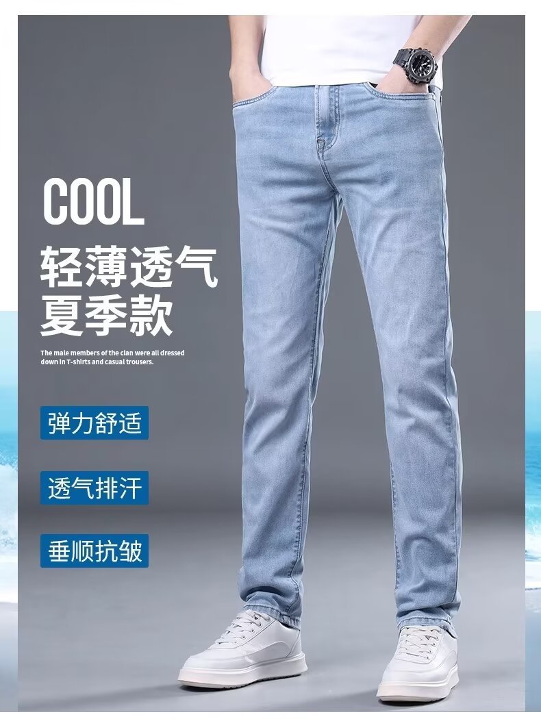하이 엔드 아이스 실크 청바지 남자 여름 얇은 바지 남자 스트레이트 남자 바지 스트레치 캐주얼 바지 남자 여름스토어 가기