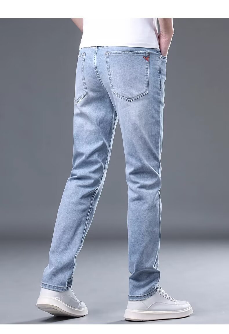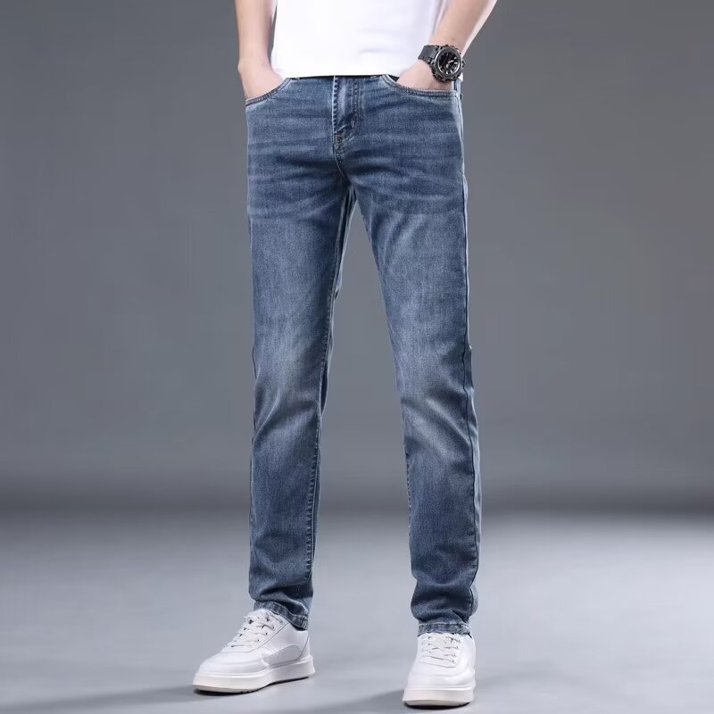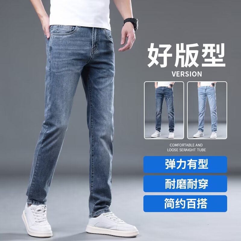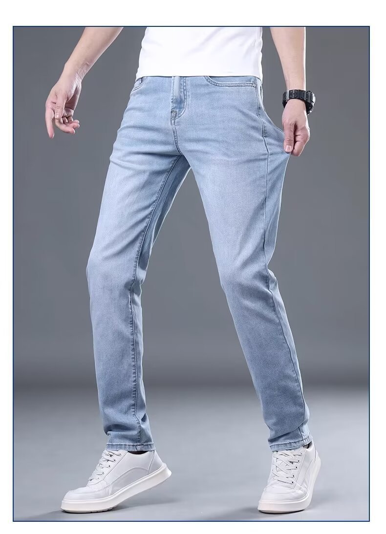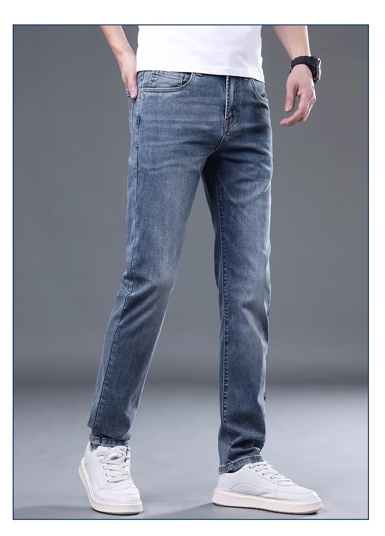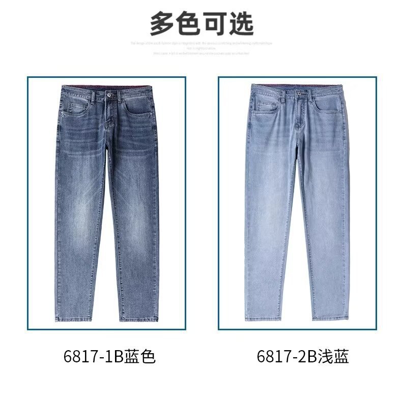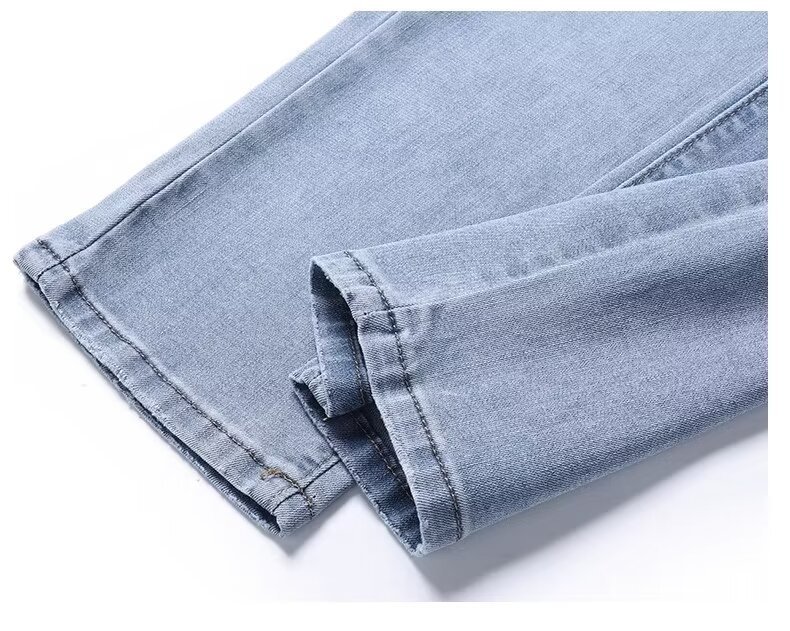 하이 엔드 아이스 실크 청바지 남자 여름 얇은 바지 남자 스트레이트 남자 바지 스트레치 캐주얼 바지 남자 여름스토어 가기