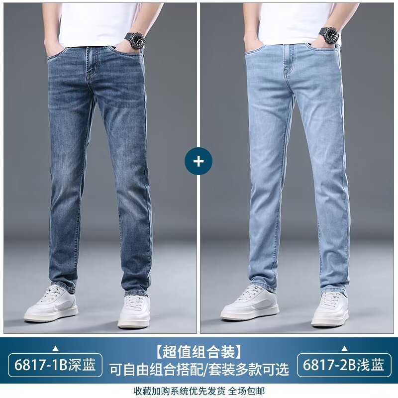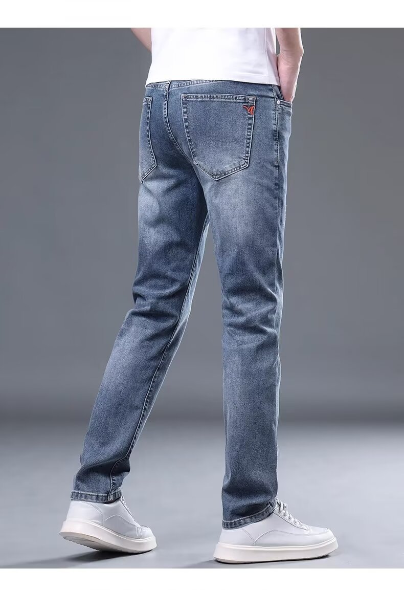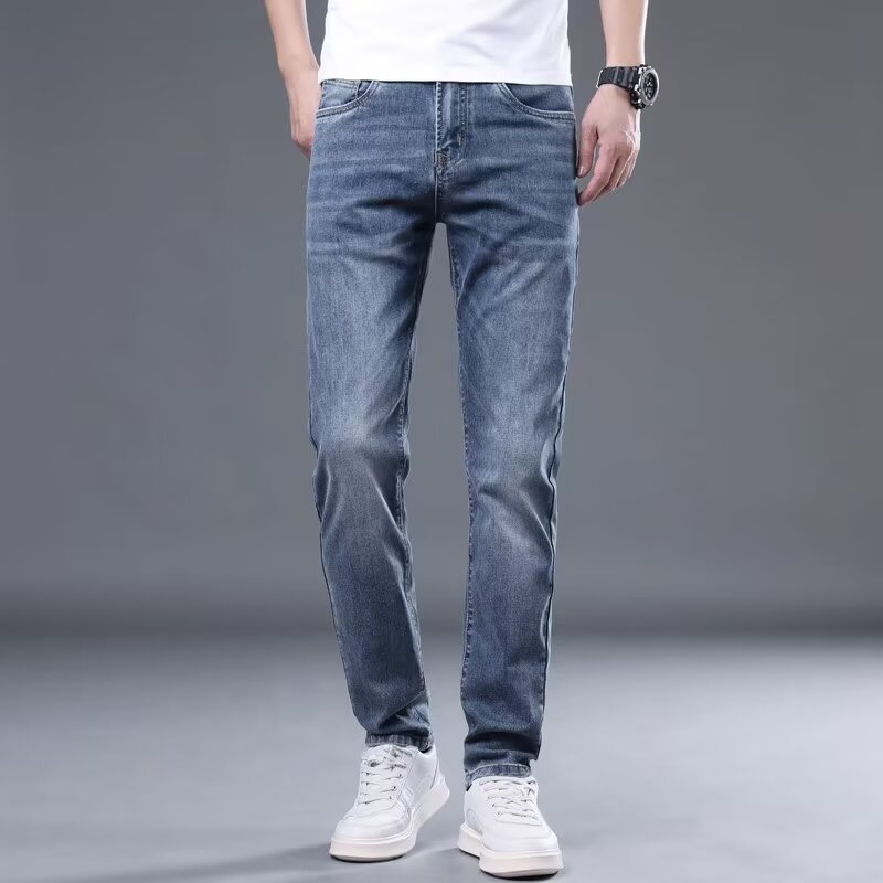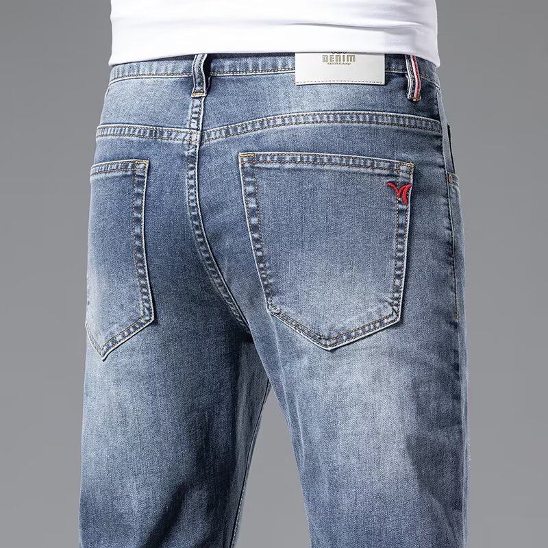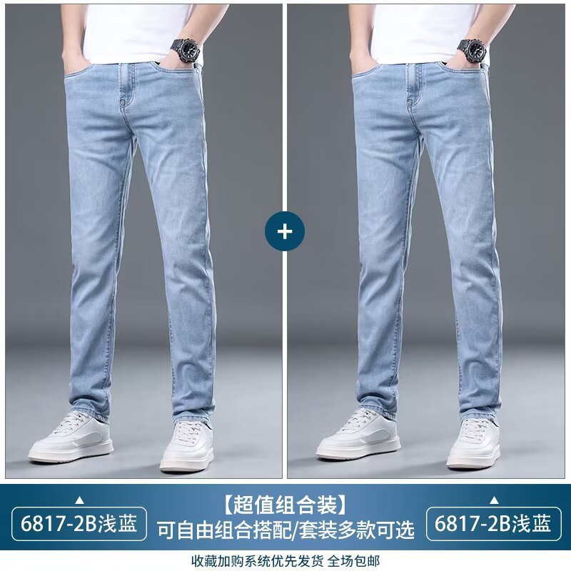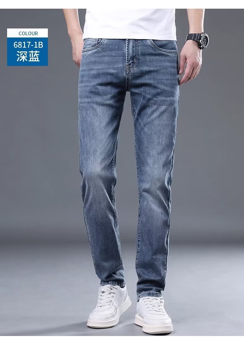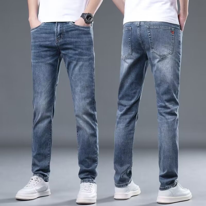 하이 엔드 아이스 실크 청바지 남자 여름 얇은 바지 남자 스트레이트 남자 바지 스트레치 캐주얼 바지 남자 여름스토어 가기