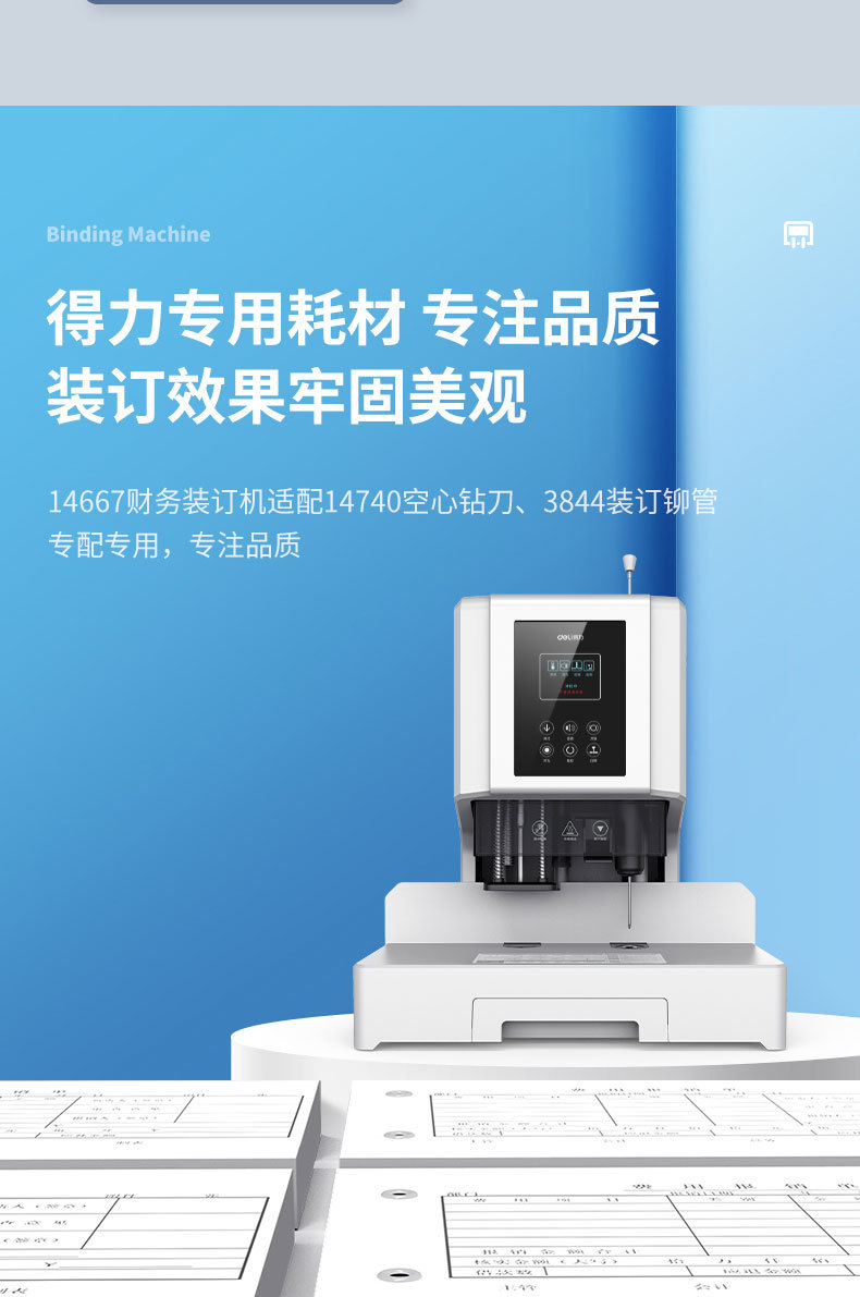델리 14667 금융 바인딩 머신 전기 펀칭 머신 파일 회계 도서 파일 금융 바우처 완전 자동스토어 가기