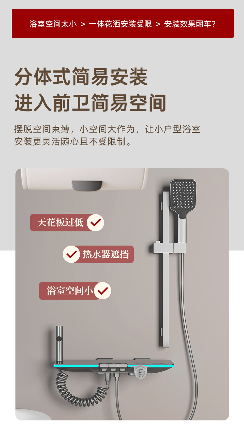 총 회색 간단한 샤워 샤워 세트 욕실 키 분위기 빛 분할 샤워 부드러운 압축 샤워스토어 가기