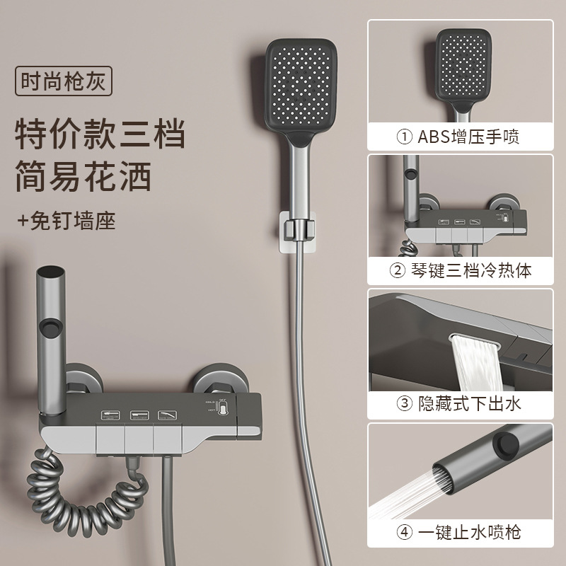 총 회색 간단한 샤워 샤워 세트 욕실 키 분위기 빛 분할 샤워 부드러운 압축 샤워