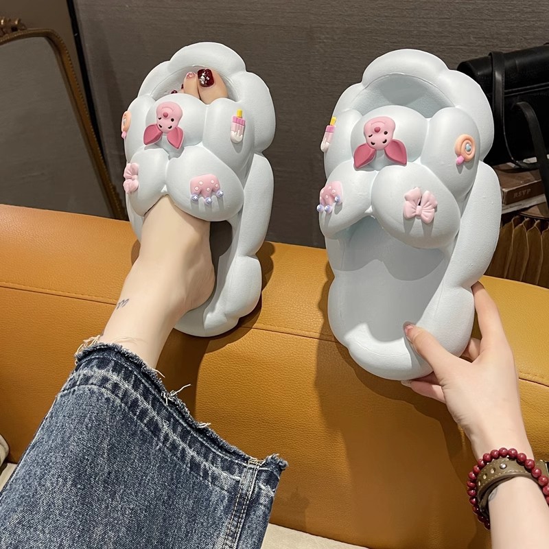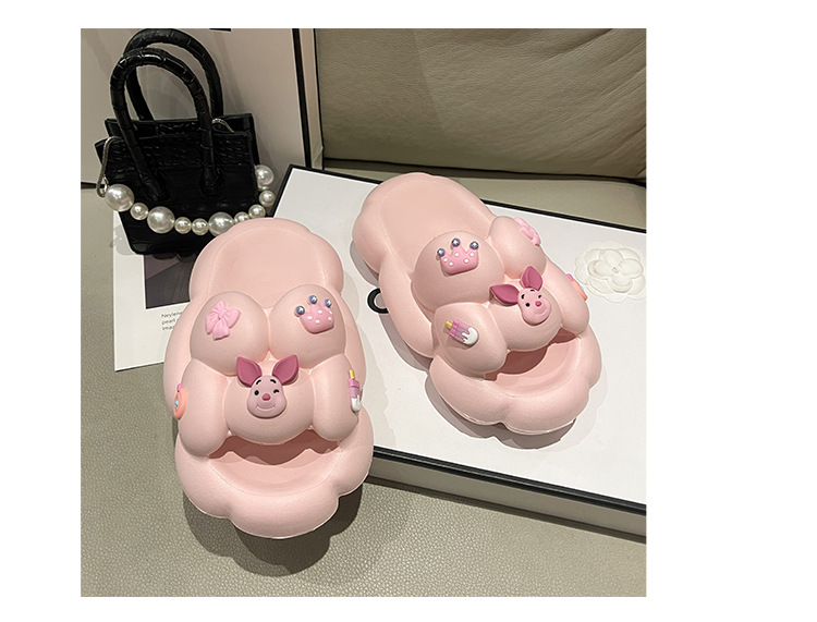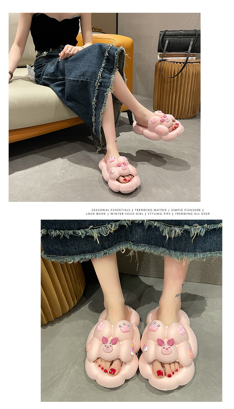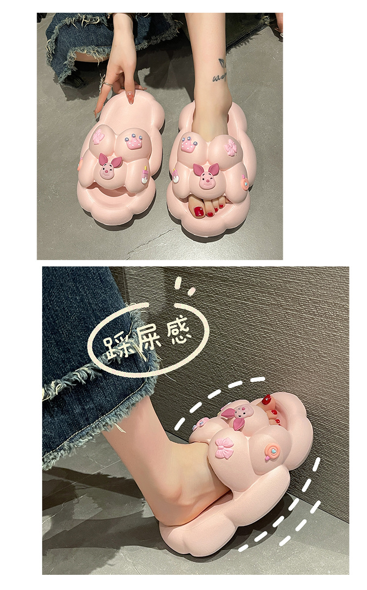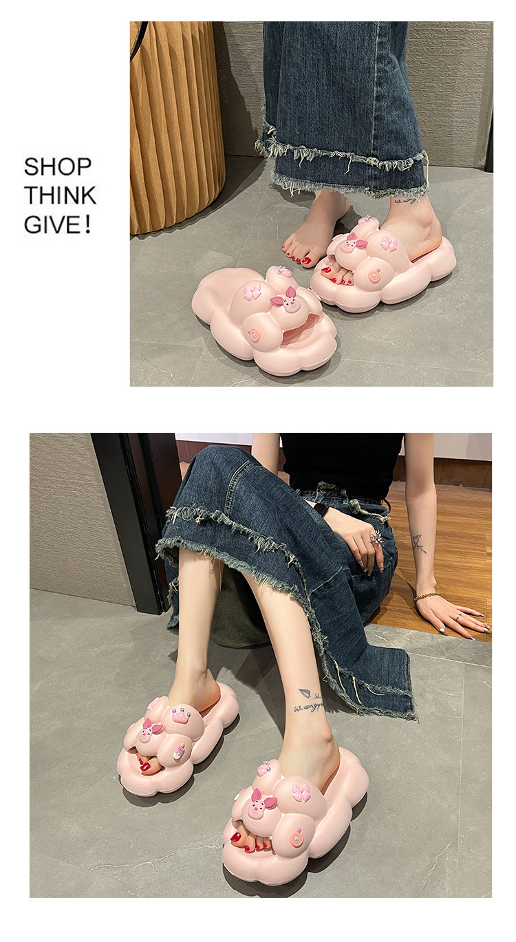 만화 귀여운 돼지 두꺼운 바닥 슬리퍼 여성 실내 홈 셔츠 슬립 온 슬립 온 여름 커플 남성 외부 착용 샌들과 슬리퍼스토어 가기