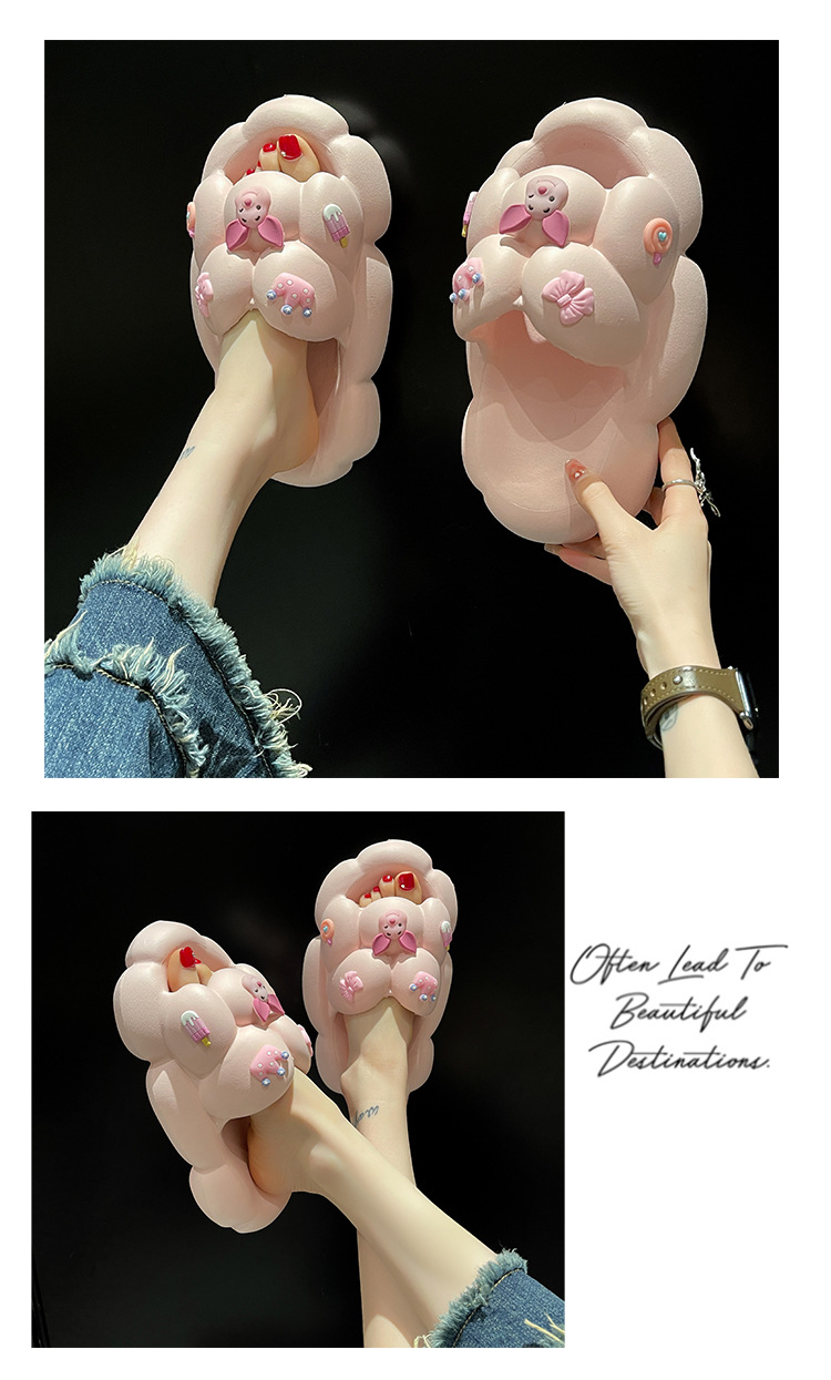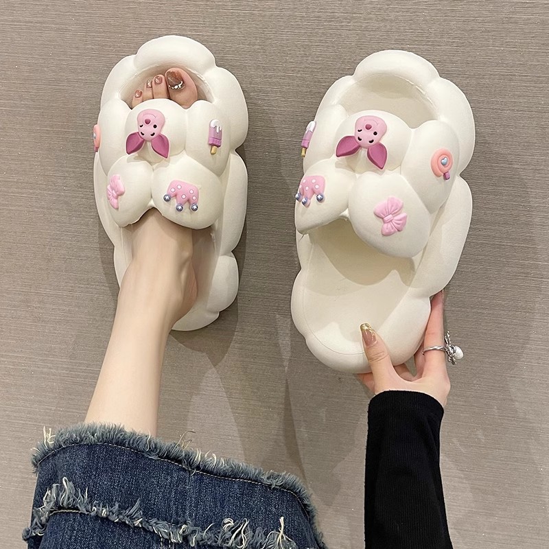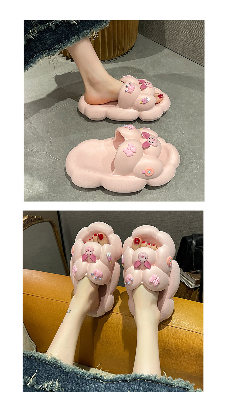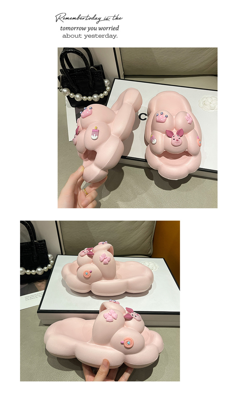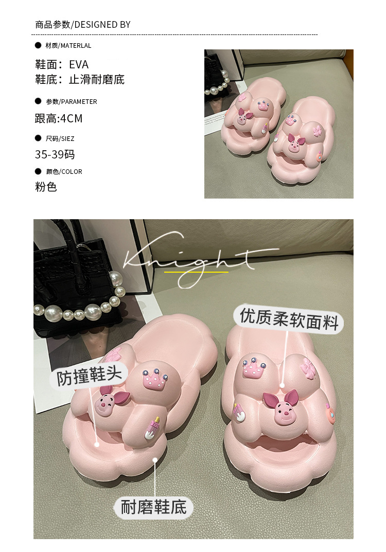 만화 귀여운 돼지 두꺼운 바닥 슬리퍼 여성 실내 홈 셔츠 슬립 온 슬립 온 여름 커플 남성 외부 착용 샌들과 슬리퍼스토어 가기