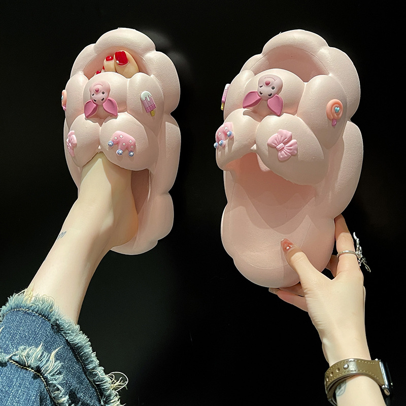 만화 귀여운 돼지 두꺼운 바닥 슬리퍼 여성 실내 홈 셔츠 슬립 온 슬립 온 여름 커플 남성 외부 착용 샌들과 슬리퍼