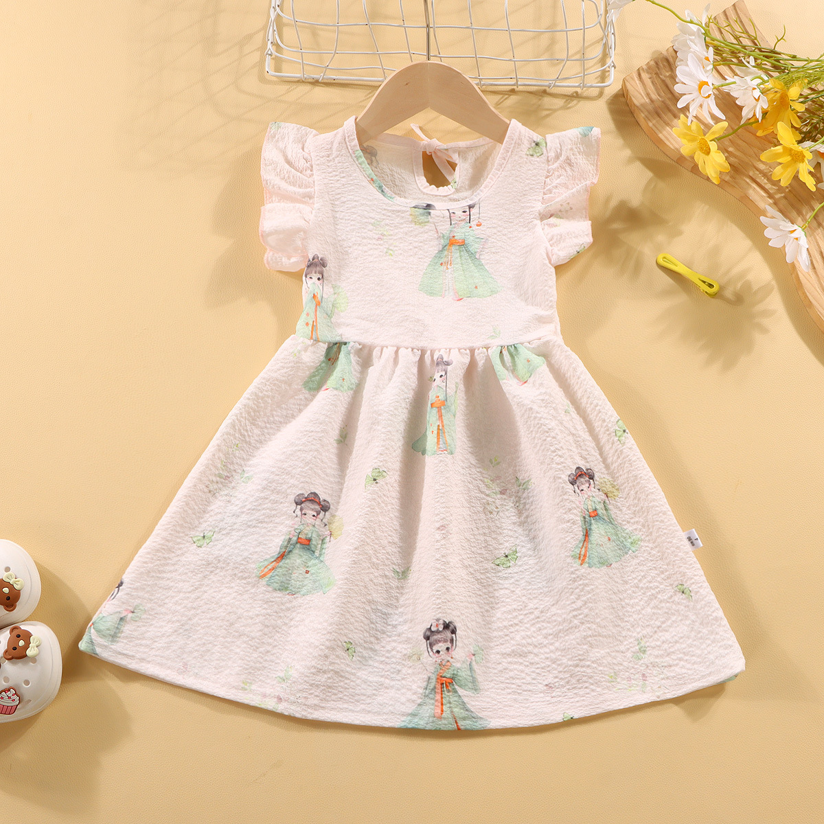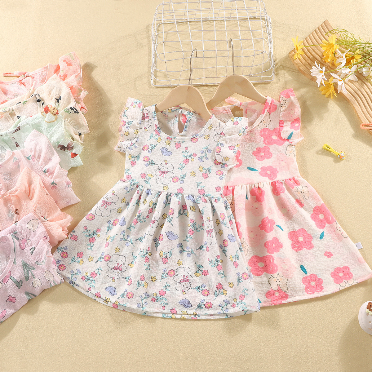 여자 원피스 여름 2024 새로운 어린이 버블 코튼 세련된 꽃 치마 여름 공주 원피스 민소매 착용스토어 가기