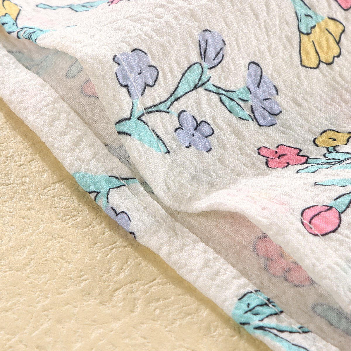 여자 원피스 여름 2024 새로운 어린이 버블 코튼 세련된 꽃 치마 여름 공주 원피스 민소매 착용