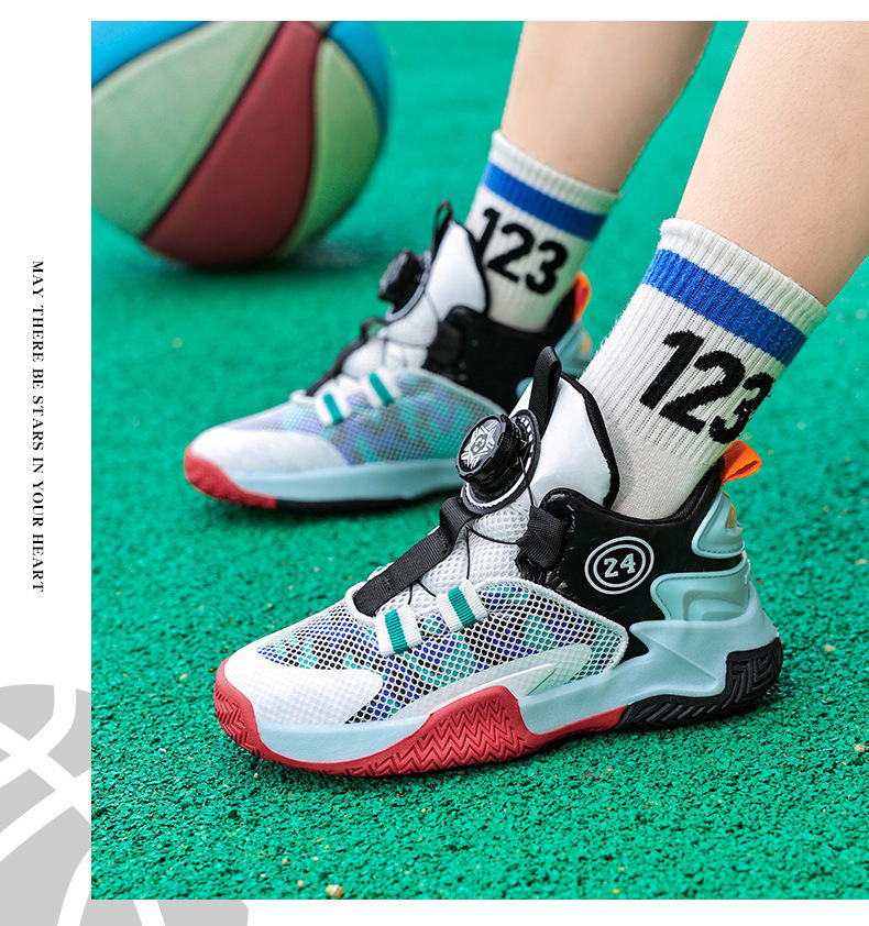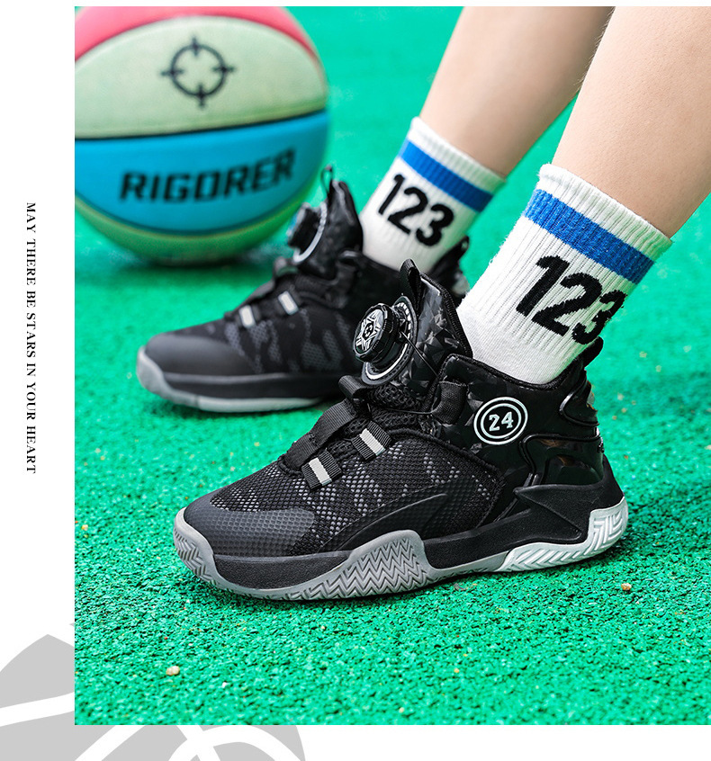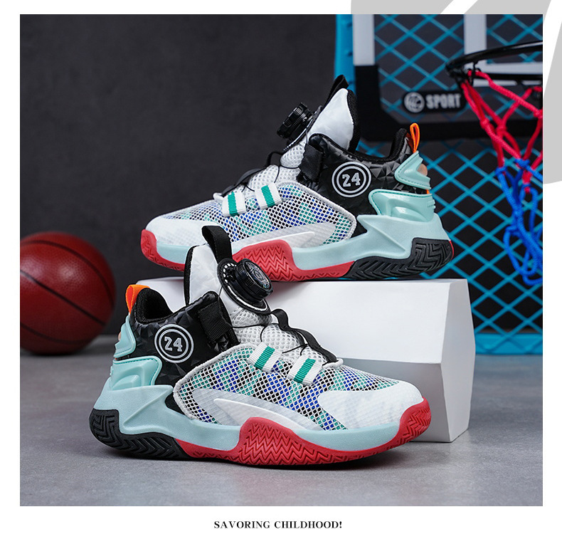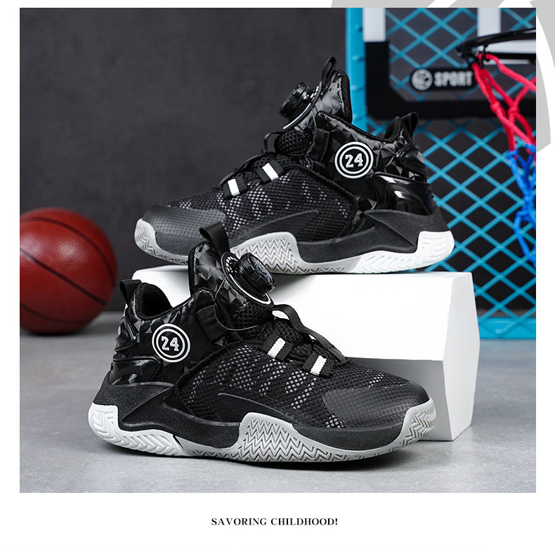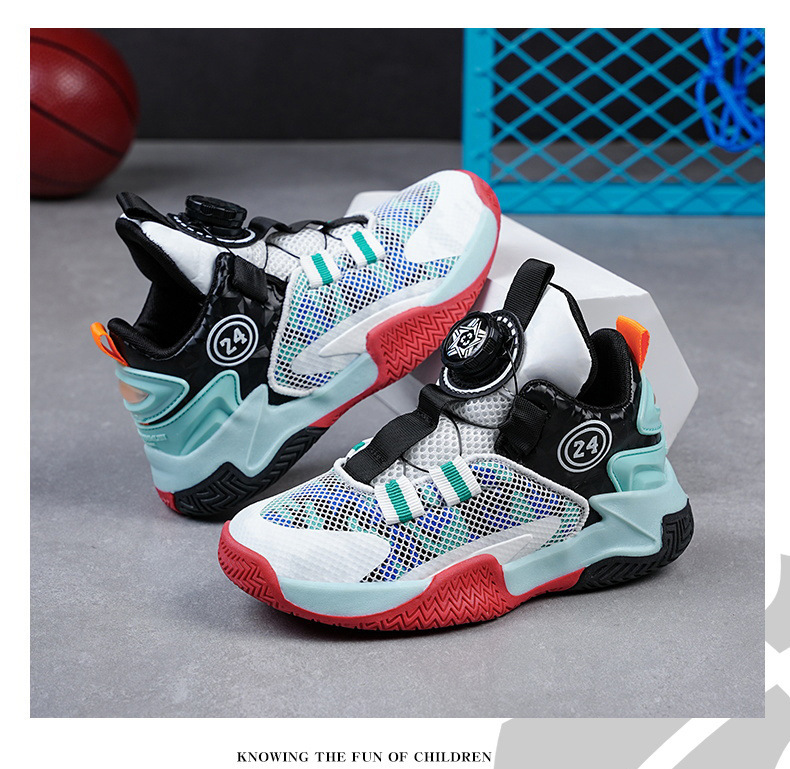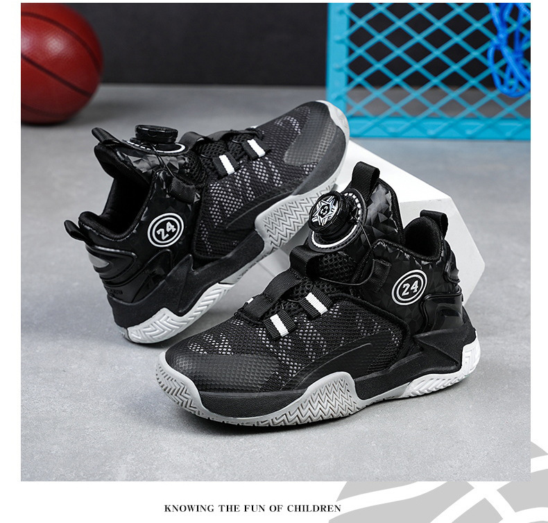 소년 신발 봄과 가을 새로운 어린이 농구 신발 운동화 어린이 회전 버클 어린이 신발 국경 도매스토어 가기