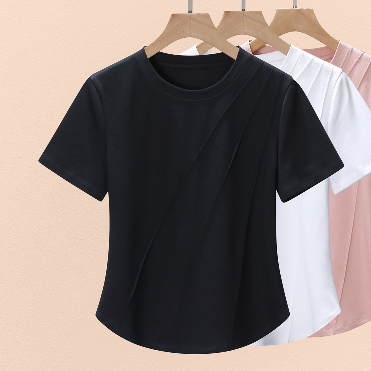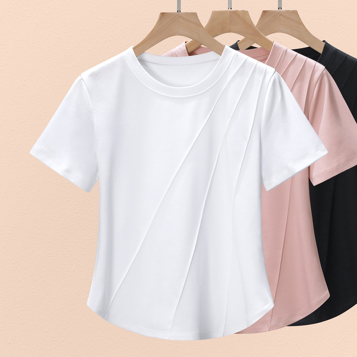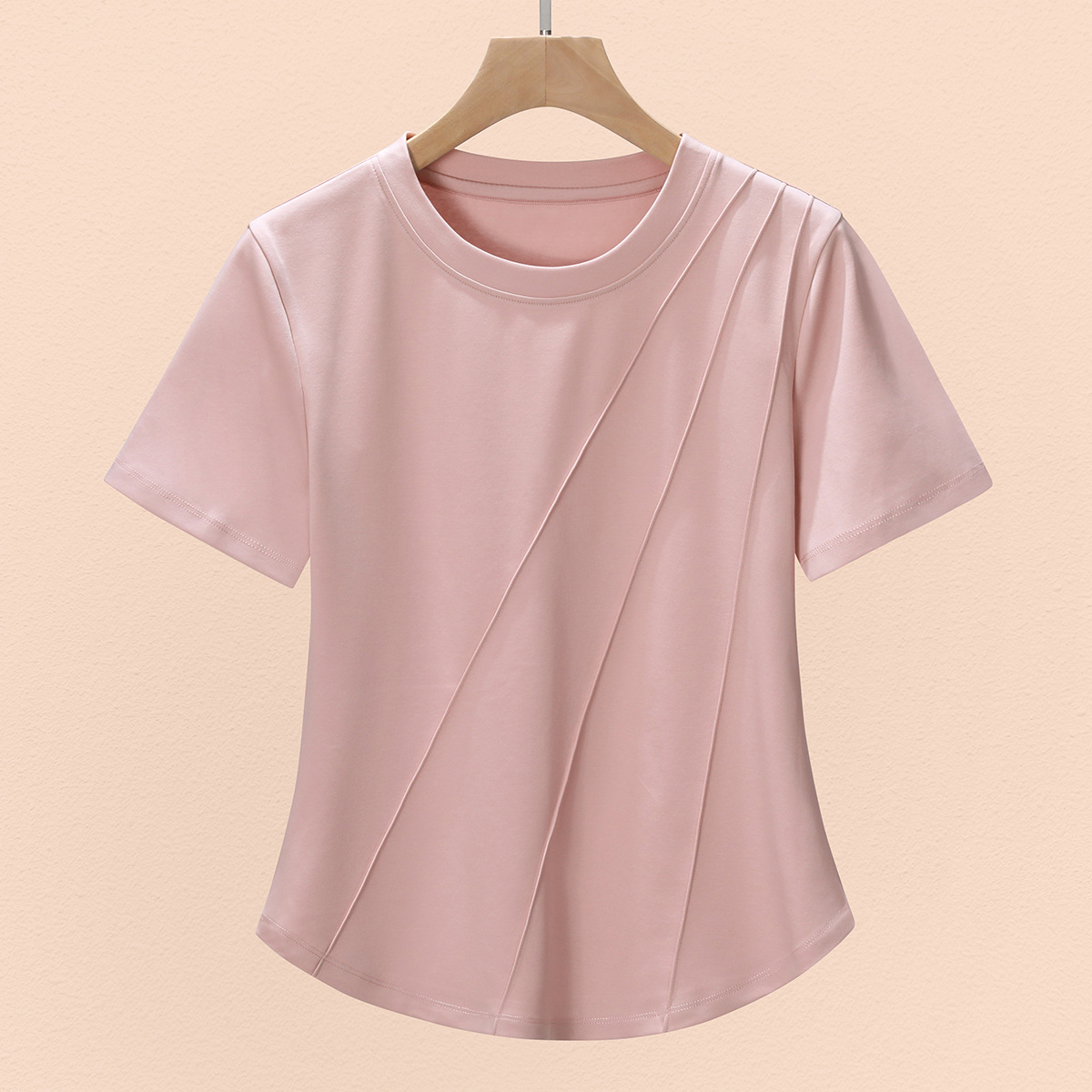 여성용 머서라이즈 코튼 반팔 티셔츠 쿨 숄더 2025 여름 신작 캐주얼 루즈 보텀 셔츠 1688 탑 의류스토어 가기