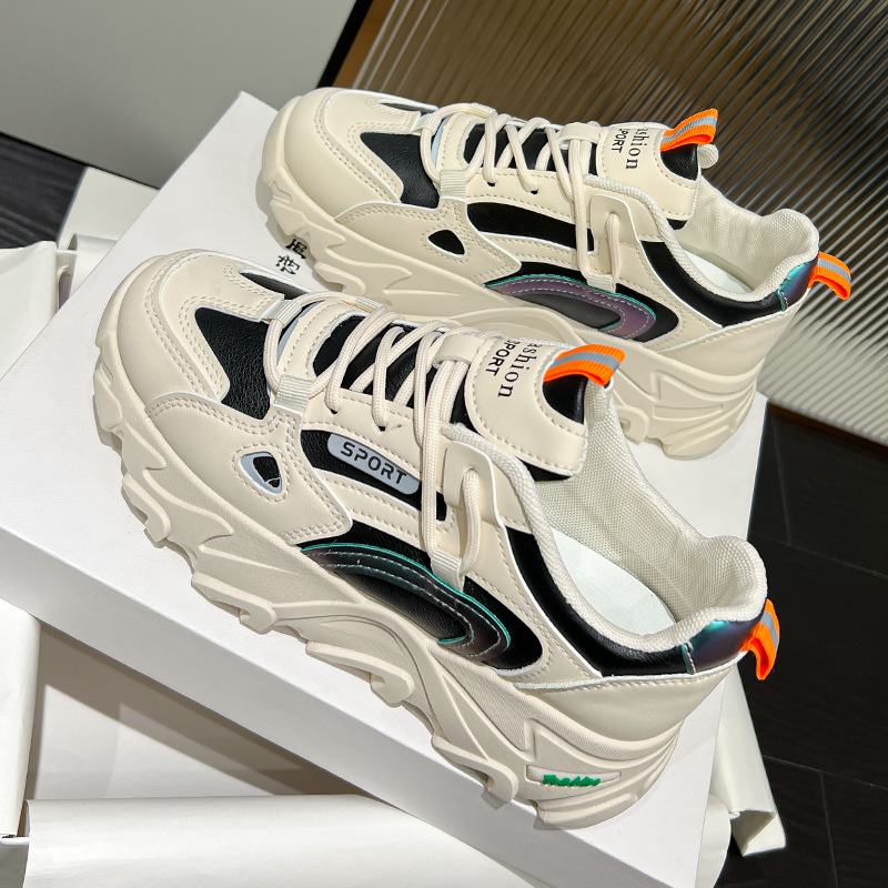 봄과 여름 2024 새로운 캐주얼 운동화 여성용 두꺼운 레트로 올매치 간단한 한국식 패셔너블 캐주얼 토르 슈즈