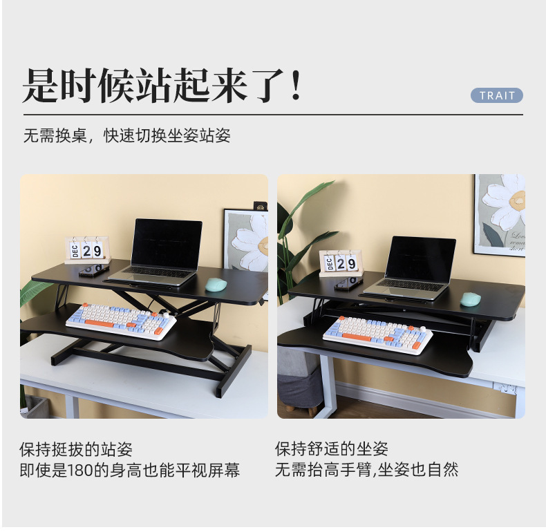 제조업체 스탠딩 컴퓨터 책상 컴퓨터 높이 조절 책상 앉아서 일하고 서서 일할 수 있는 접이식 작업대 책상 높이 조절 책상 해외 판매스토어 가기