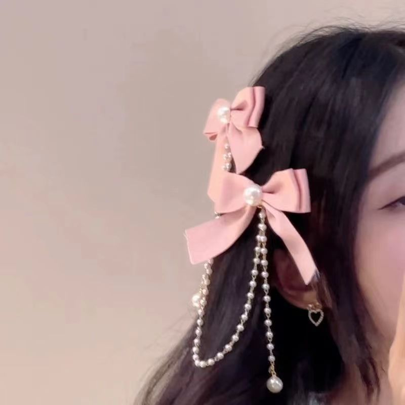 핑크 활 프린지 헤어핀 ~ 핑크 소녀 하트 활 프린지 헤어핀스토어 가기
