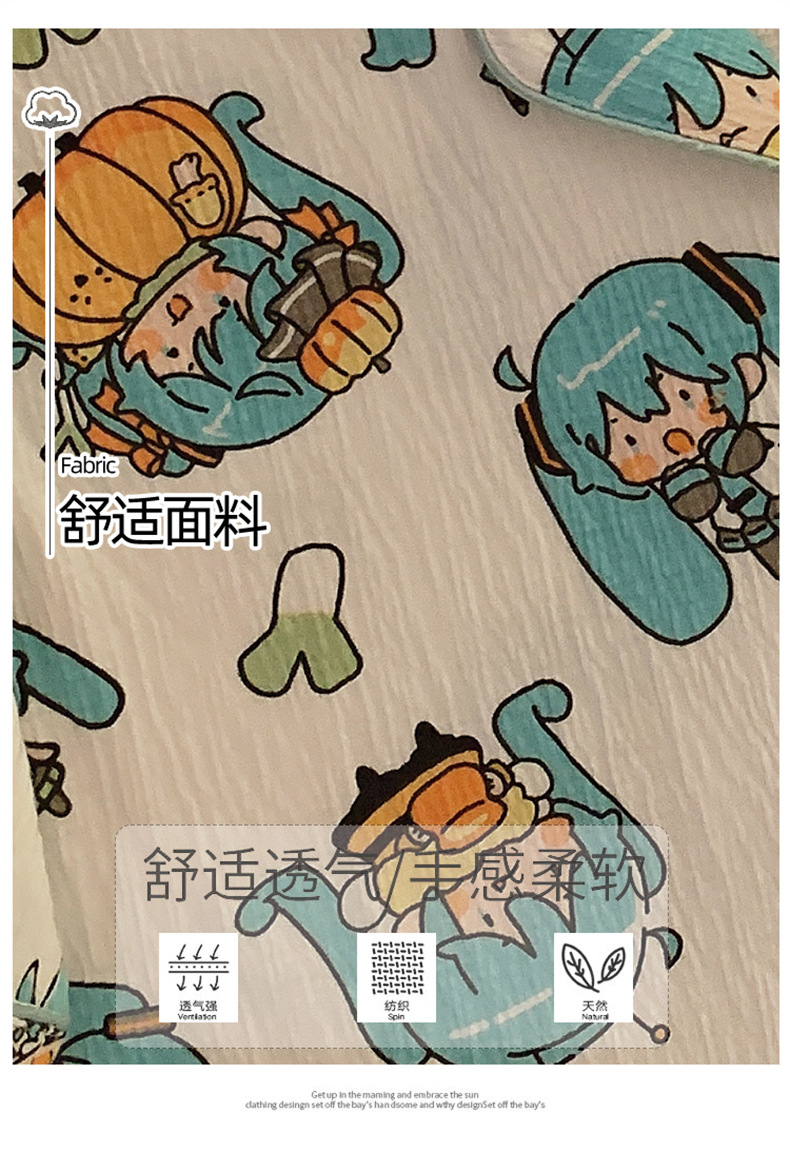 하츠네 미래 퓨어 코튼 파자마 여성 여름 만화 반팔 자동차 의류 투피스 세트 아이 마스크