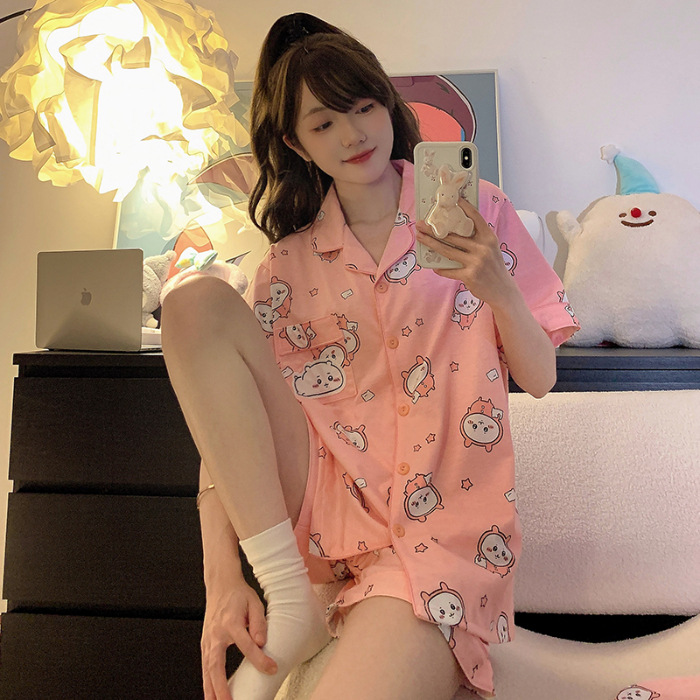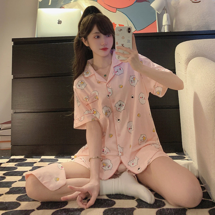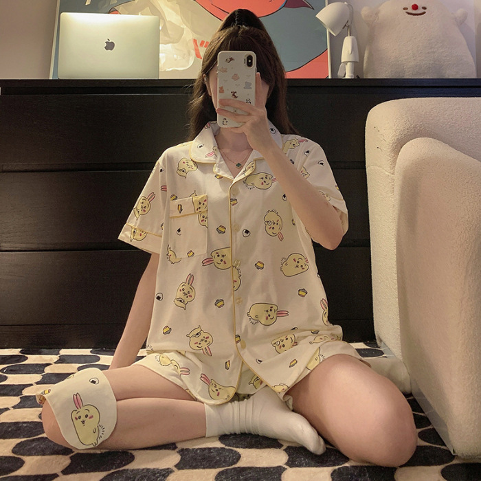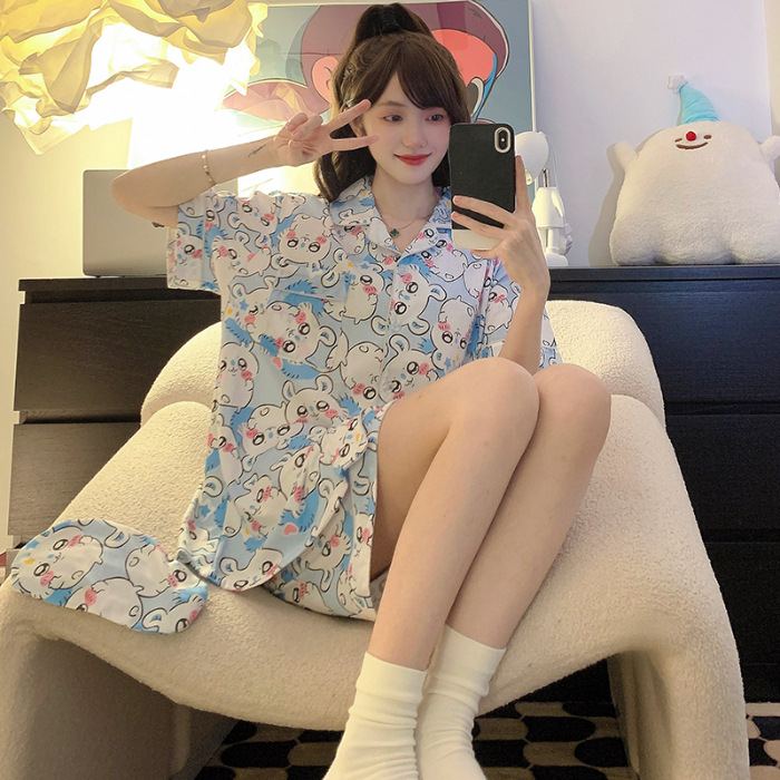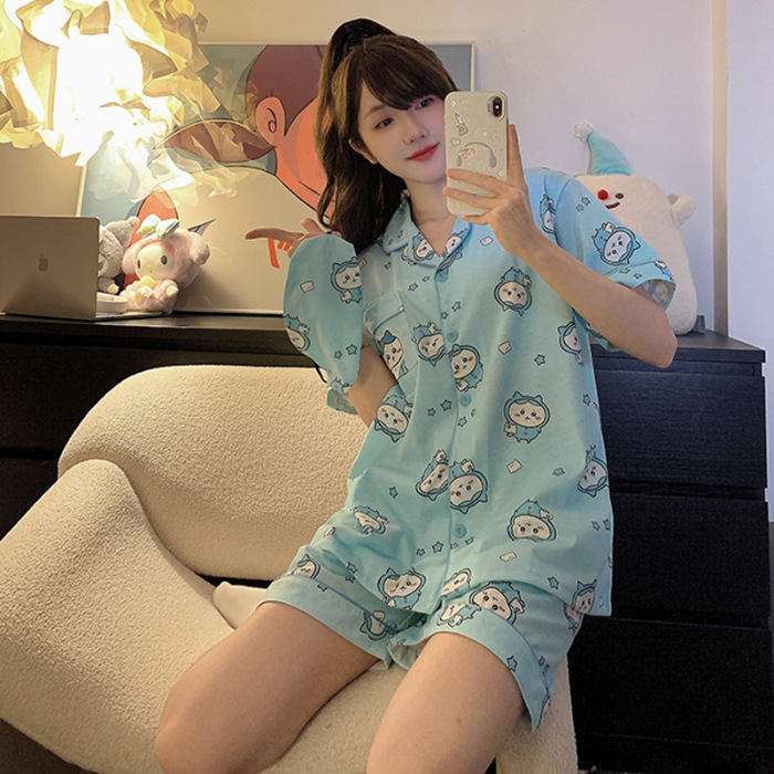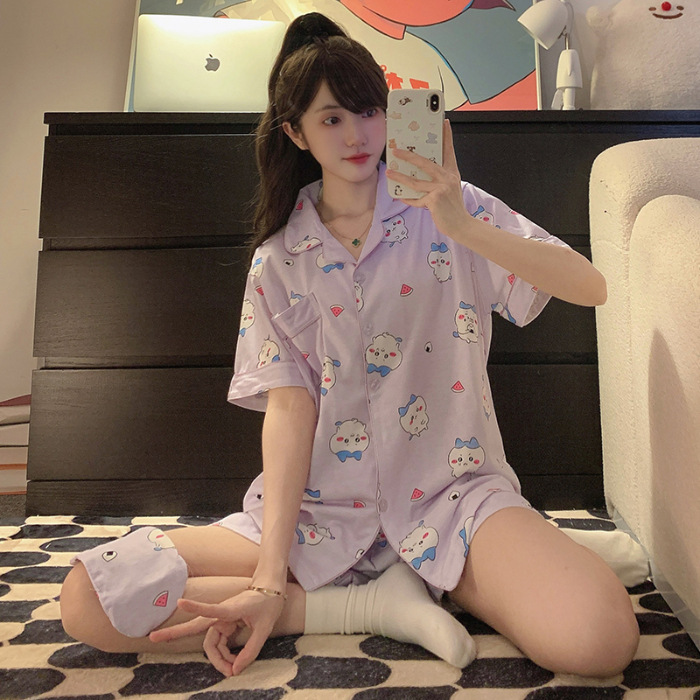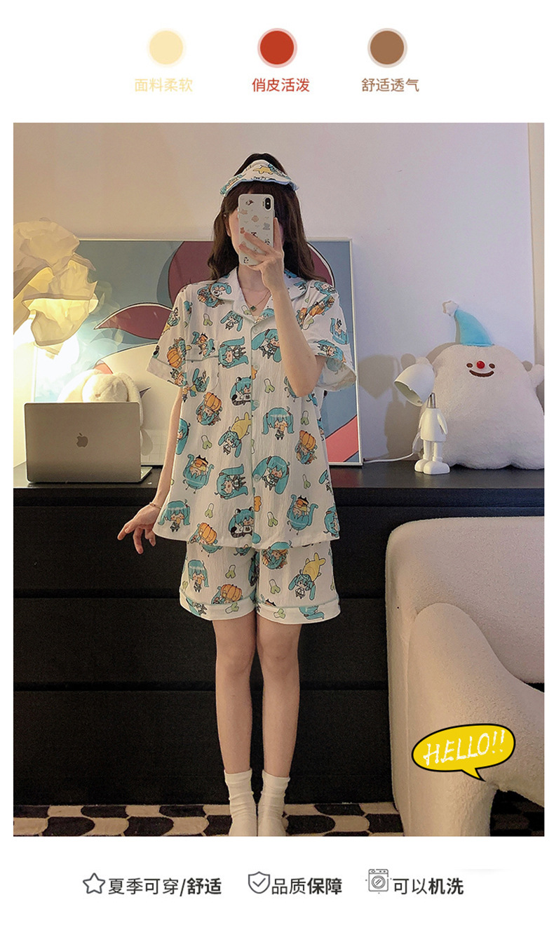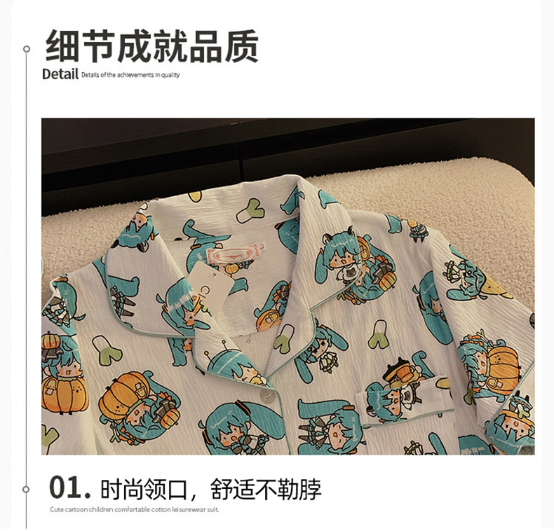 하츠네 미래 퓨어 코튼 파자마 여성 여름 만화 반팔 자동차 의류 투피스 세트 아이 마스크스토어 가기