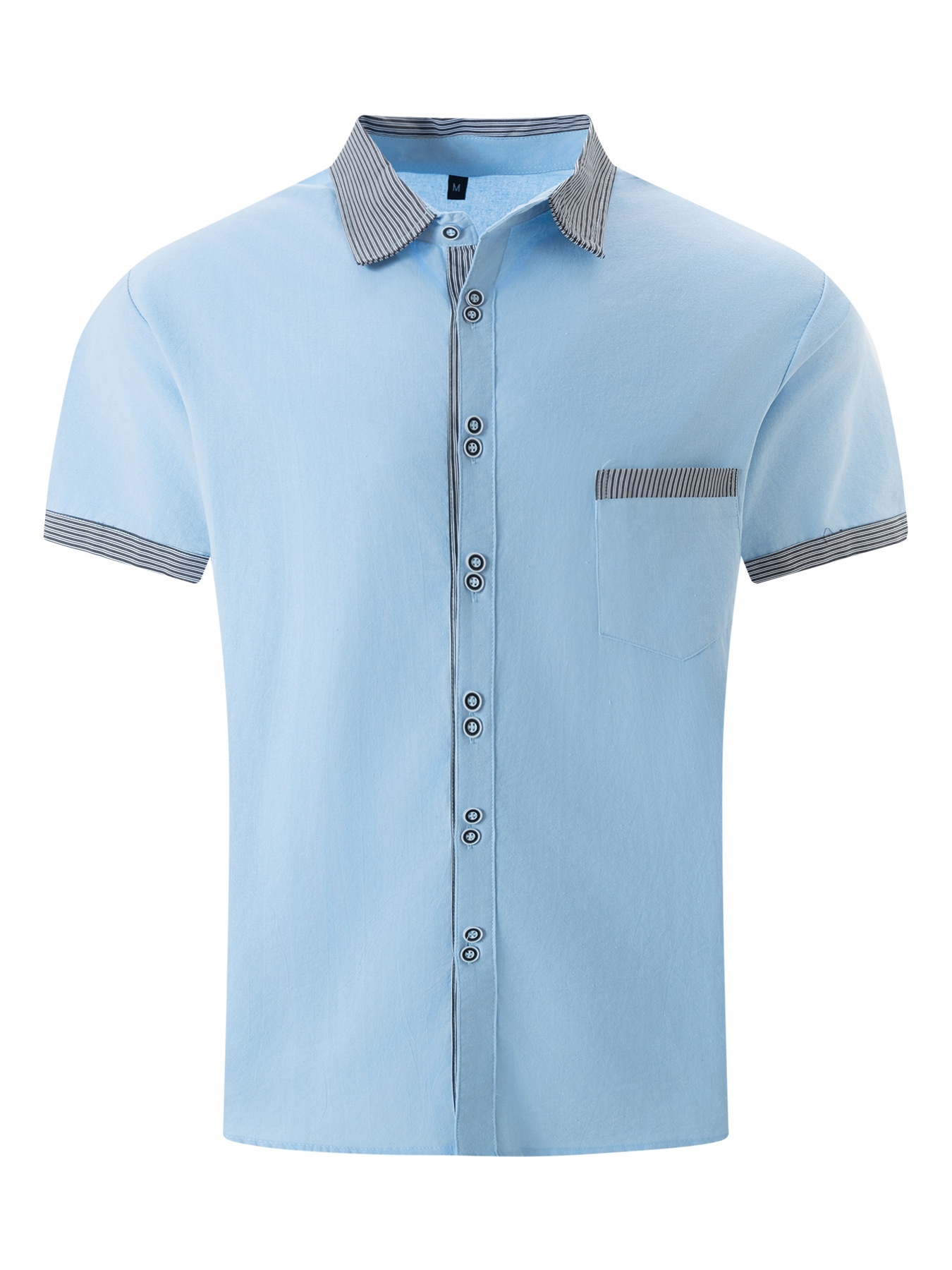 2024 국경 새 여름 패션 남성 줄무늬 더블 버클 반팔 비즈니스 슬림 핏 캐주얼 셔츠 반팔 셔츠스토어 가기