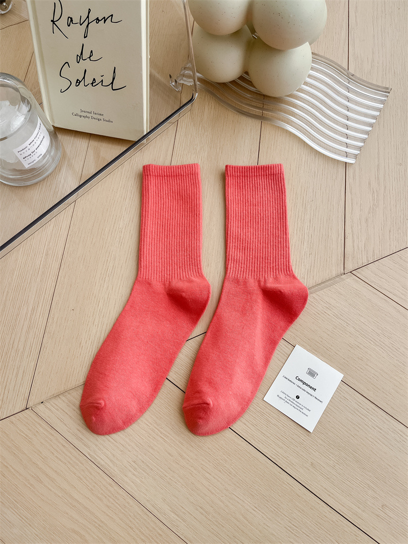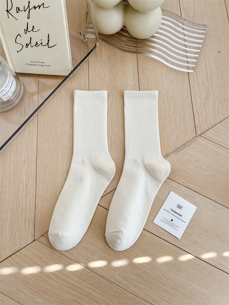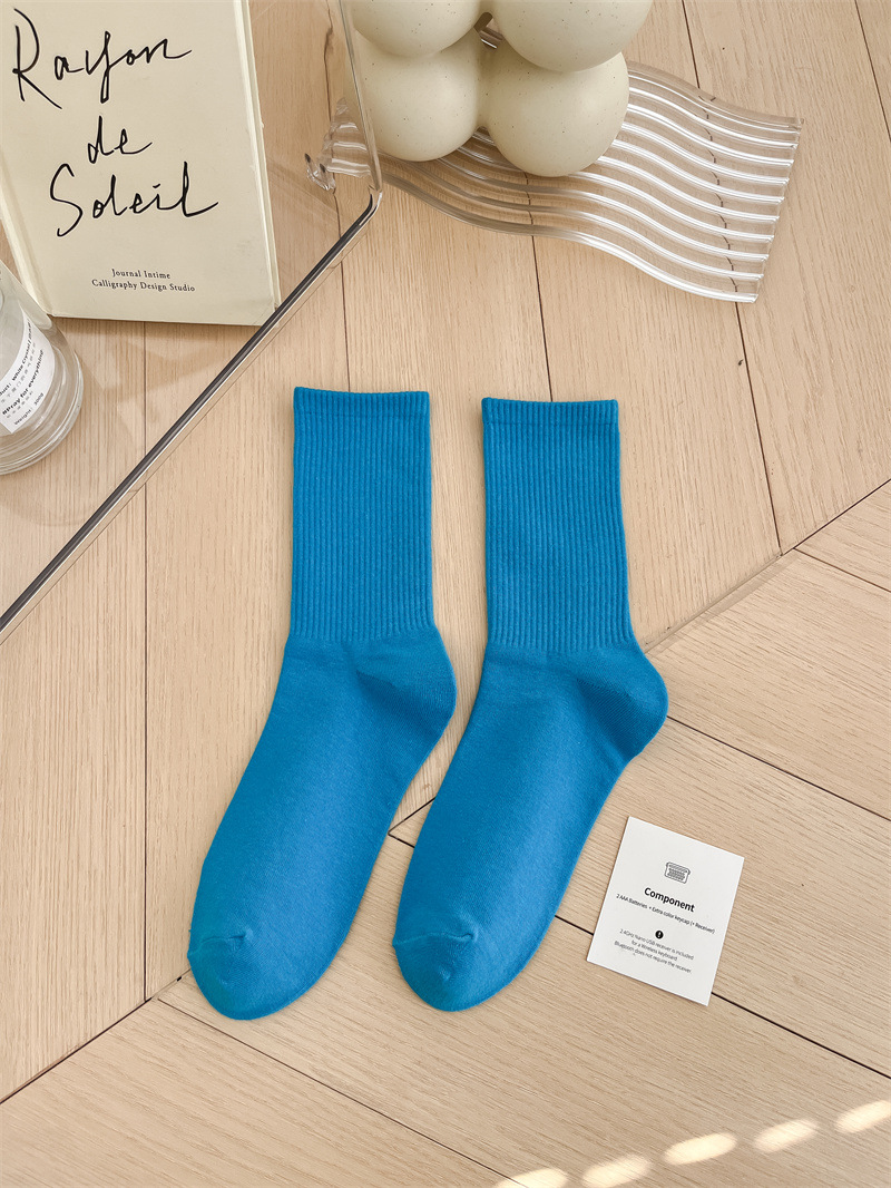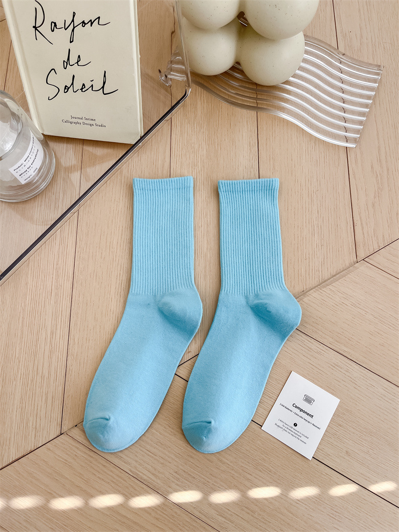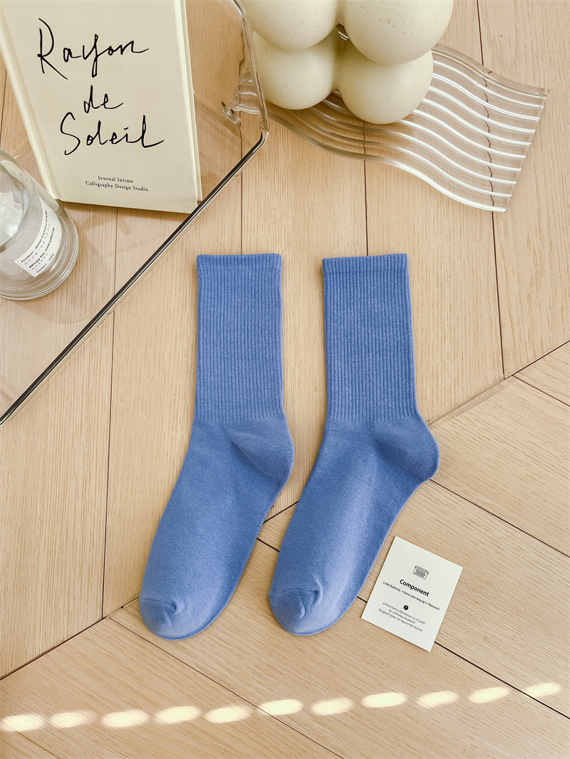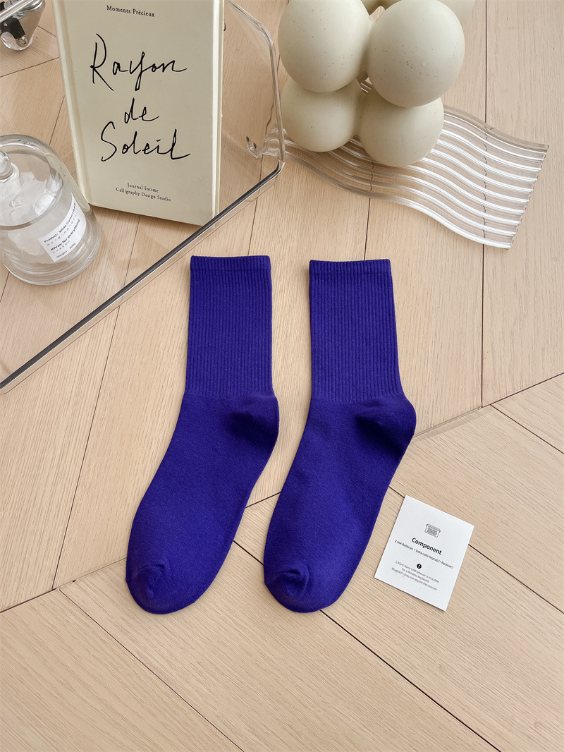 보라색 양말 여성용 봄 순수 코튼 하단 Ins 트렌디 한 일본 스포츠 양말 상어 바지와 흰색 떨어지지 않은 튜브 양말스토어 가기