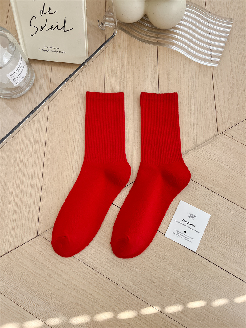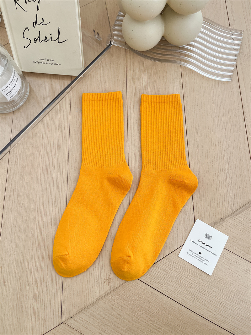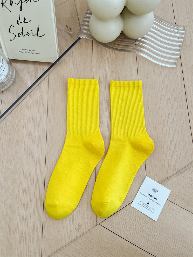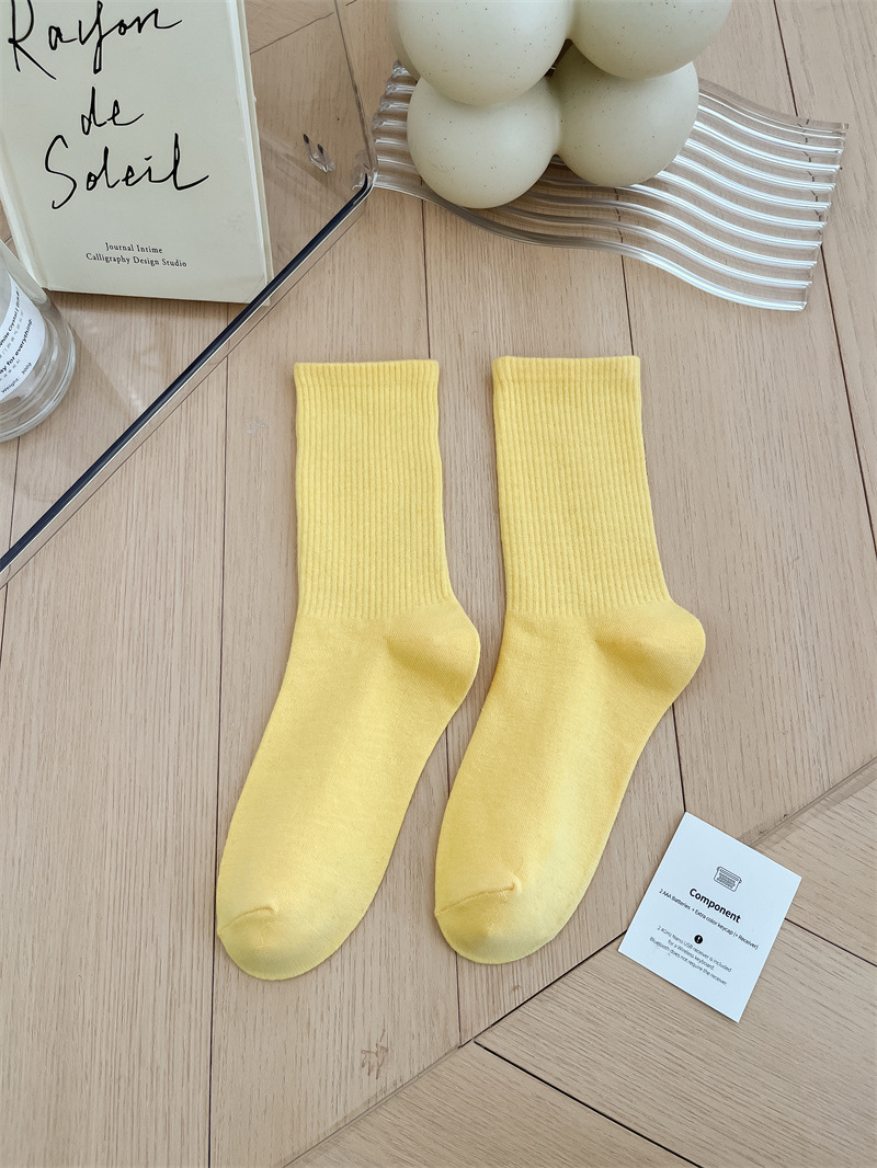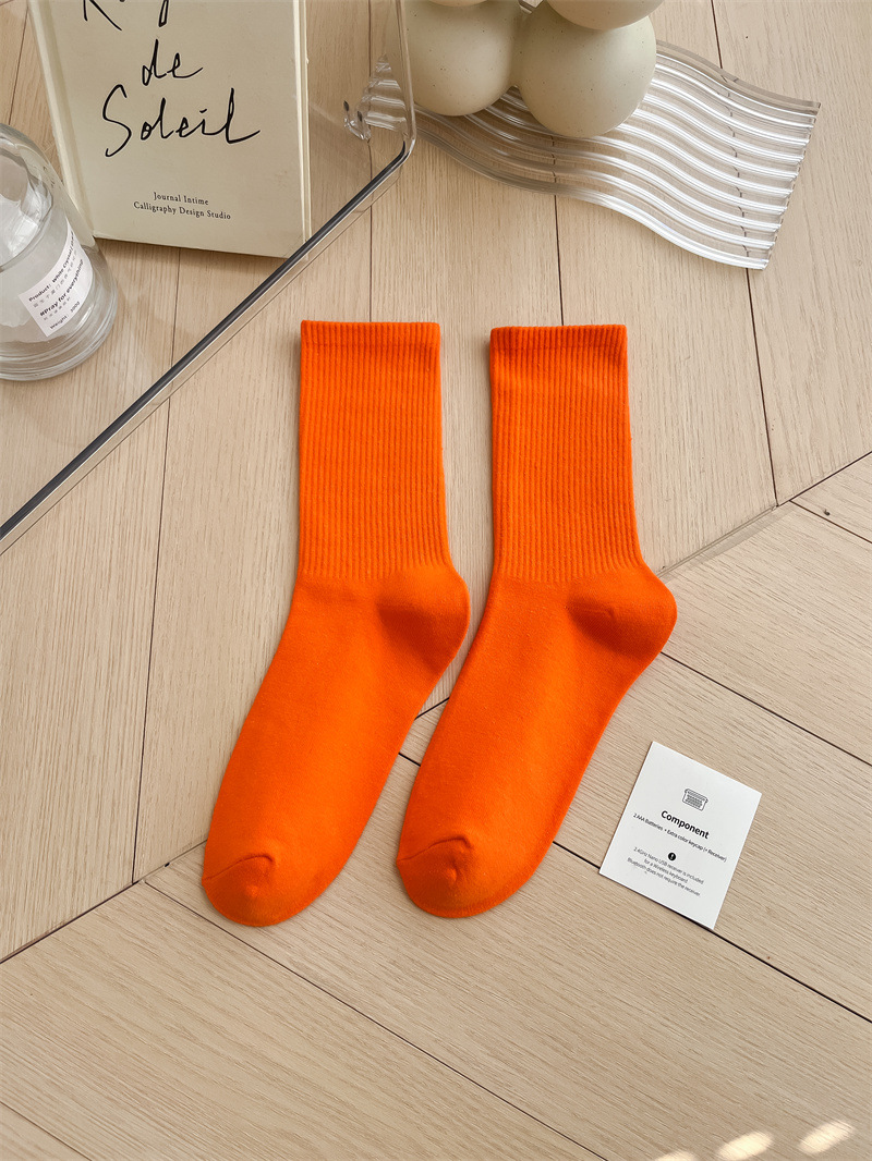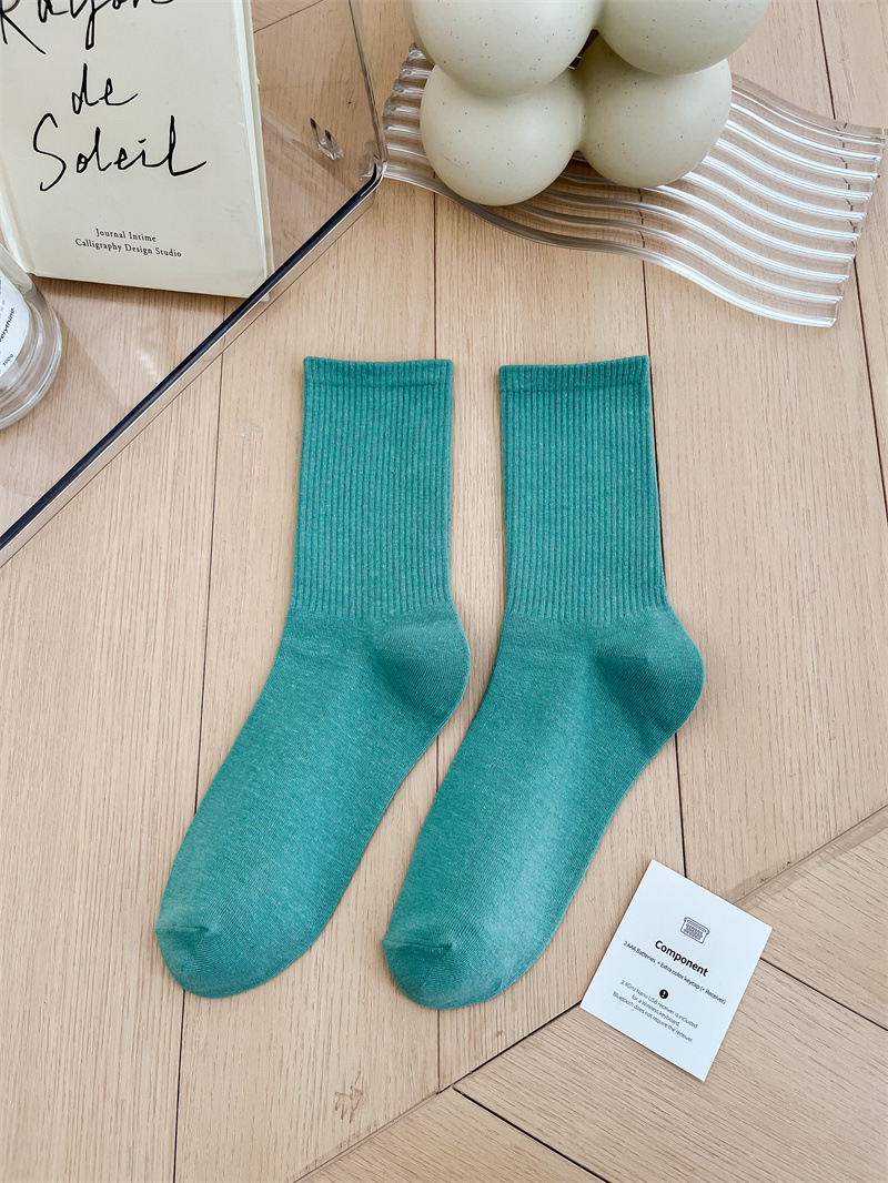 보라색 양말 여성용 봄 순수 코튼 하단 Ins 트렌디 한 일본 스포츠 양말 상어 바지와 흰색 떨어지지 않은 튜브 양말스토어 가기