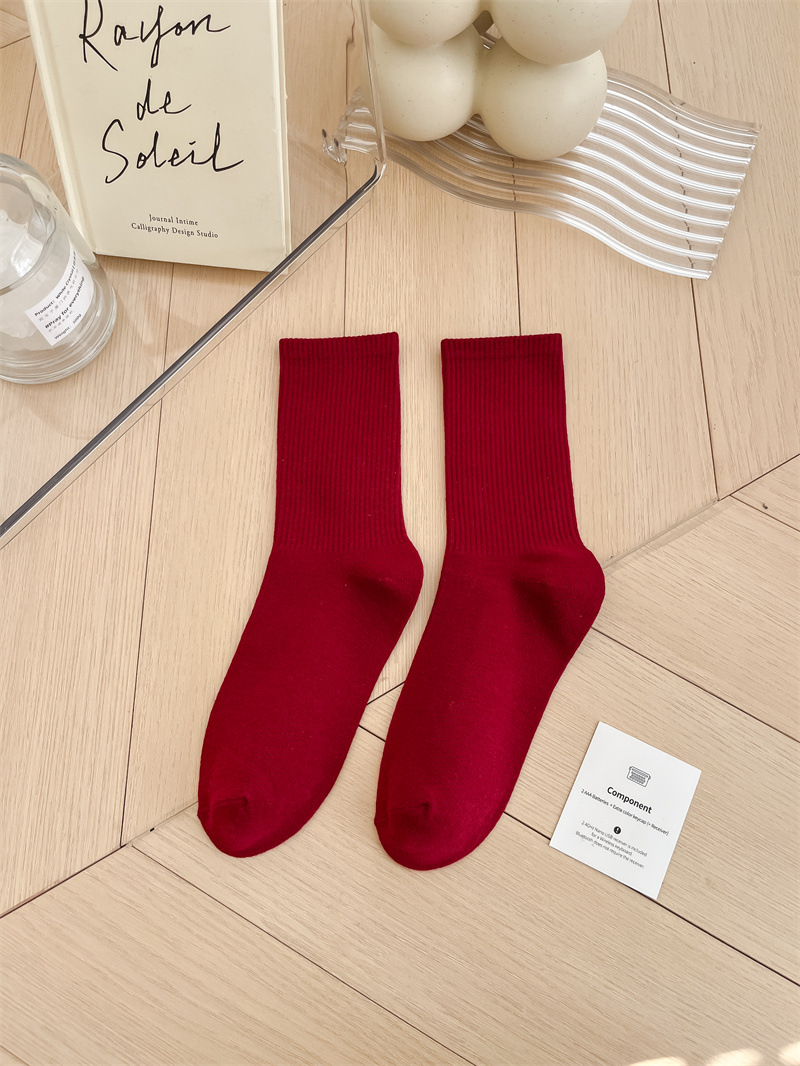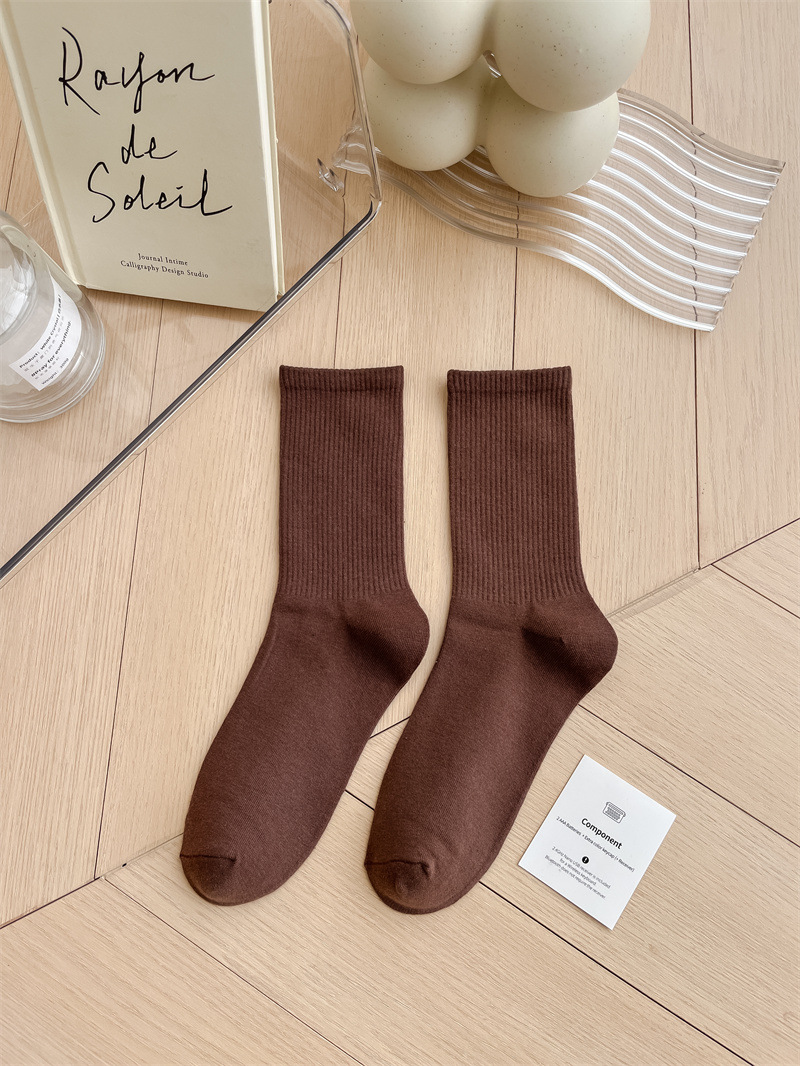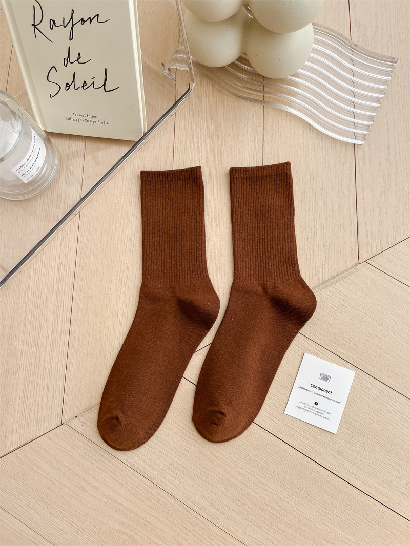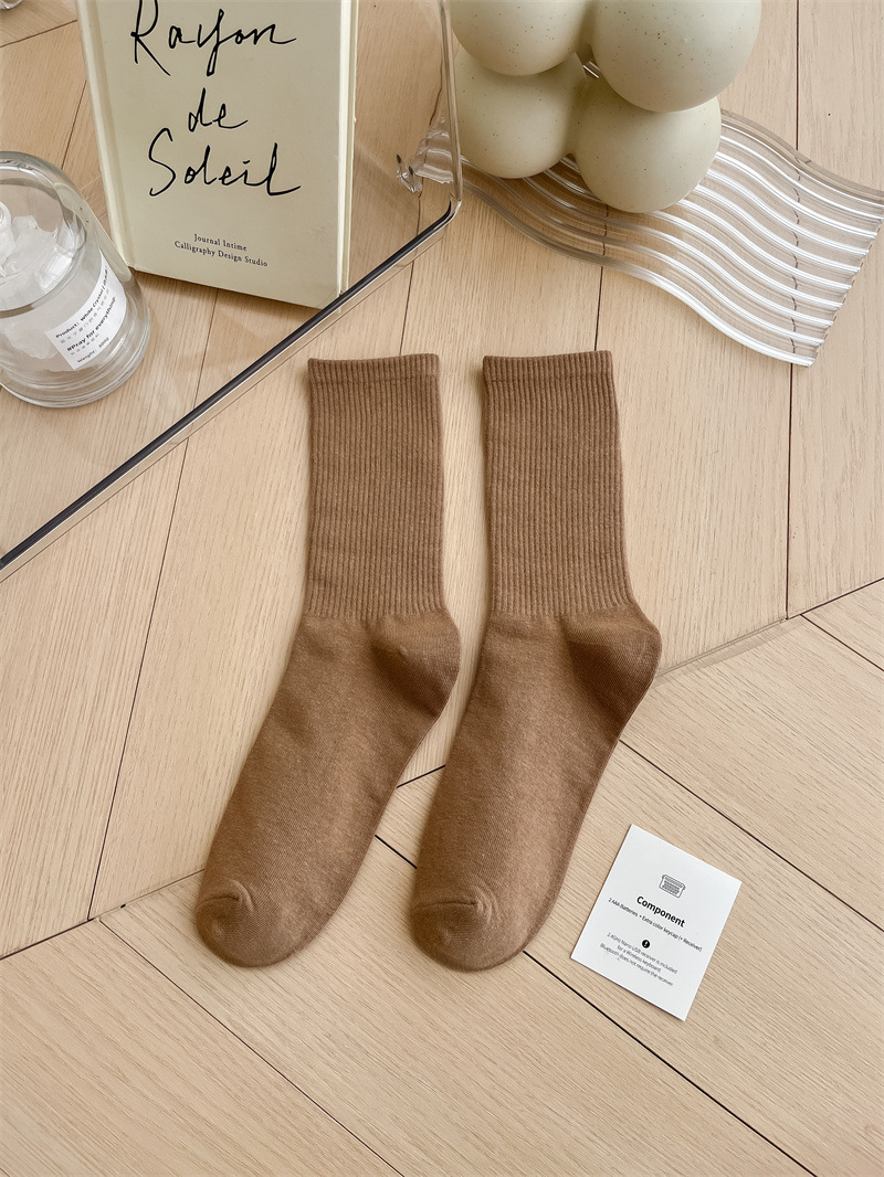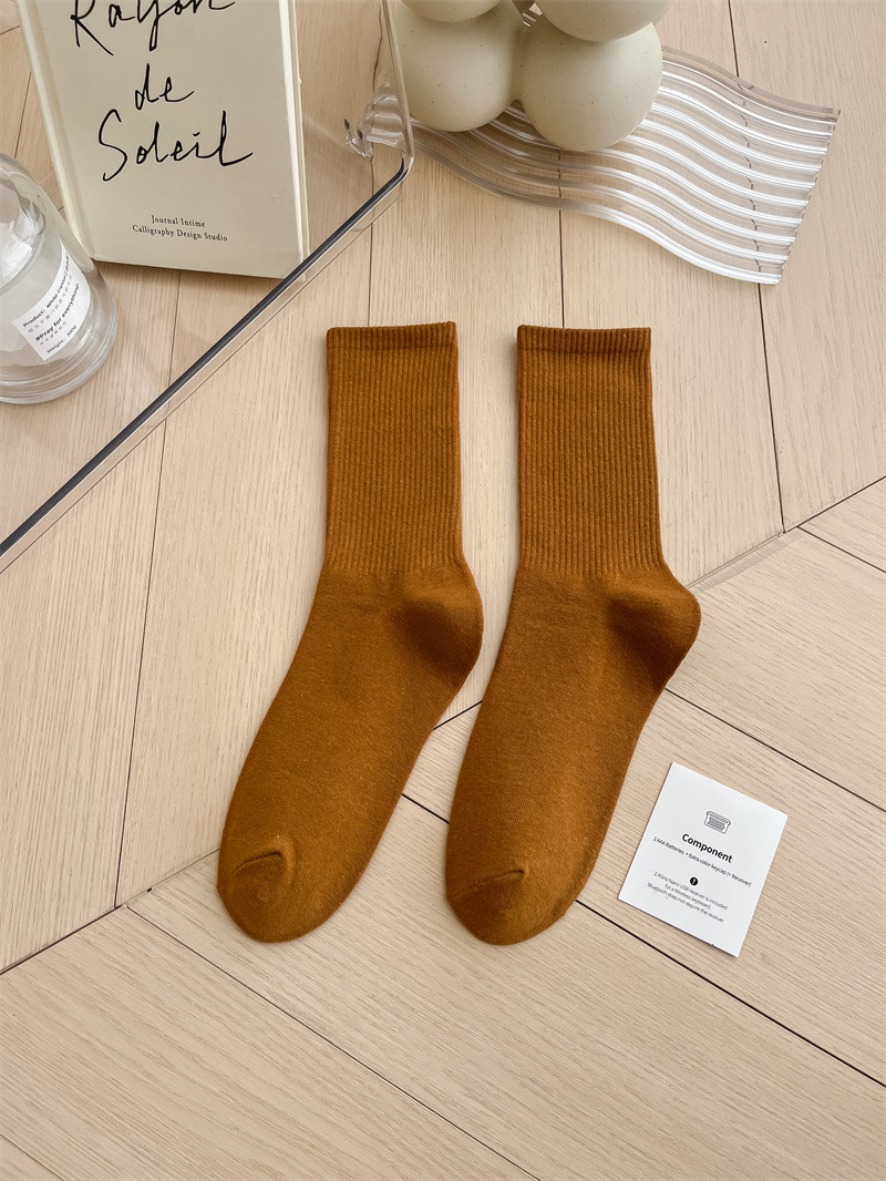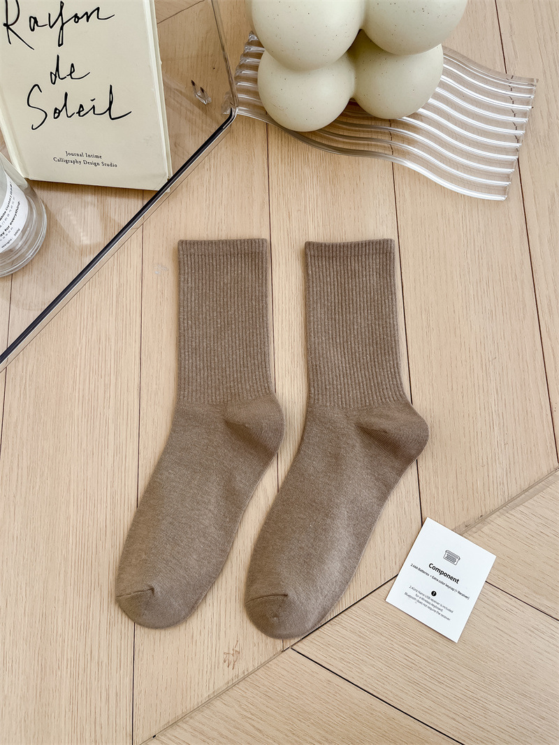 보라색 양말 여성용 봄 순수 코튼 하단 Ins 트렌디 한 일본 스포츠 양말 상어 바지와 흰색 떨어지지 않은 튜브 양말스토어 가기