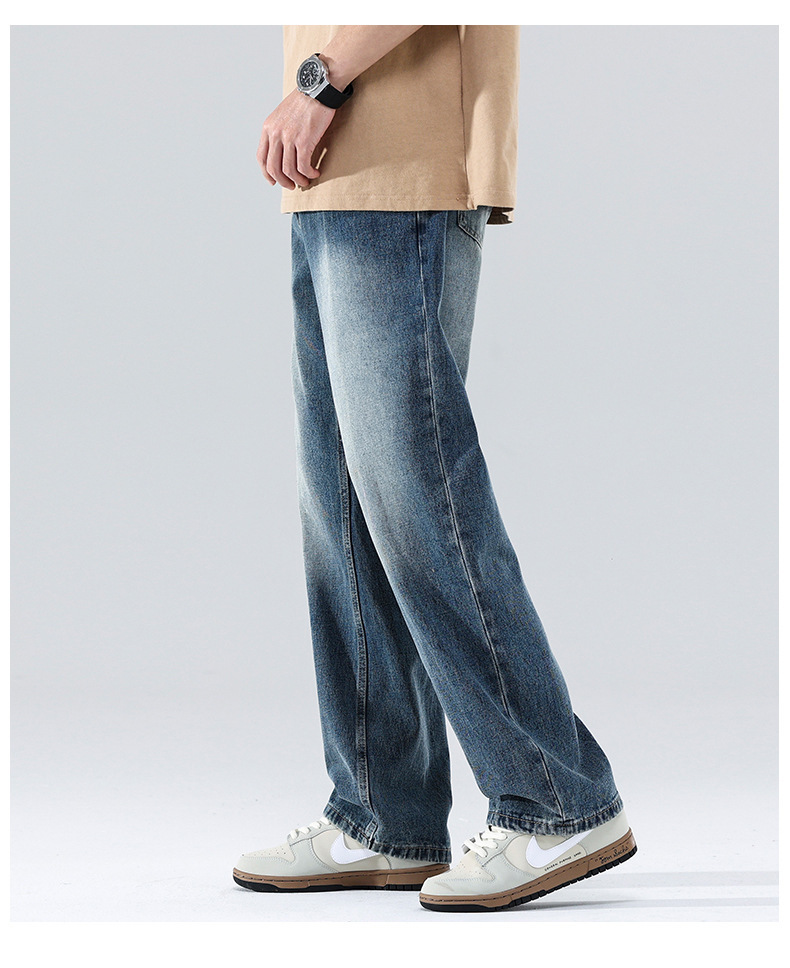 MN 새로운 한국 스타일 느슨한 스트레이트 솔리드 블루 올 매치 청바지 재고 싱글 기본 청바지스토어 가기