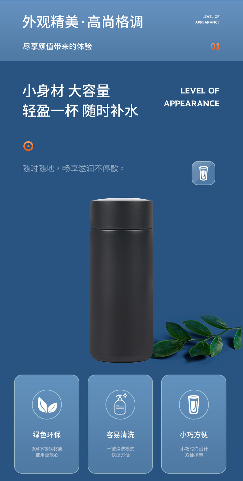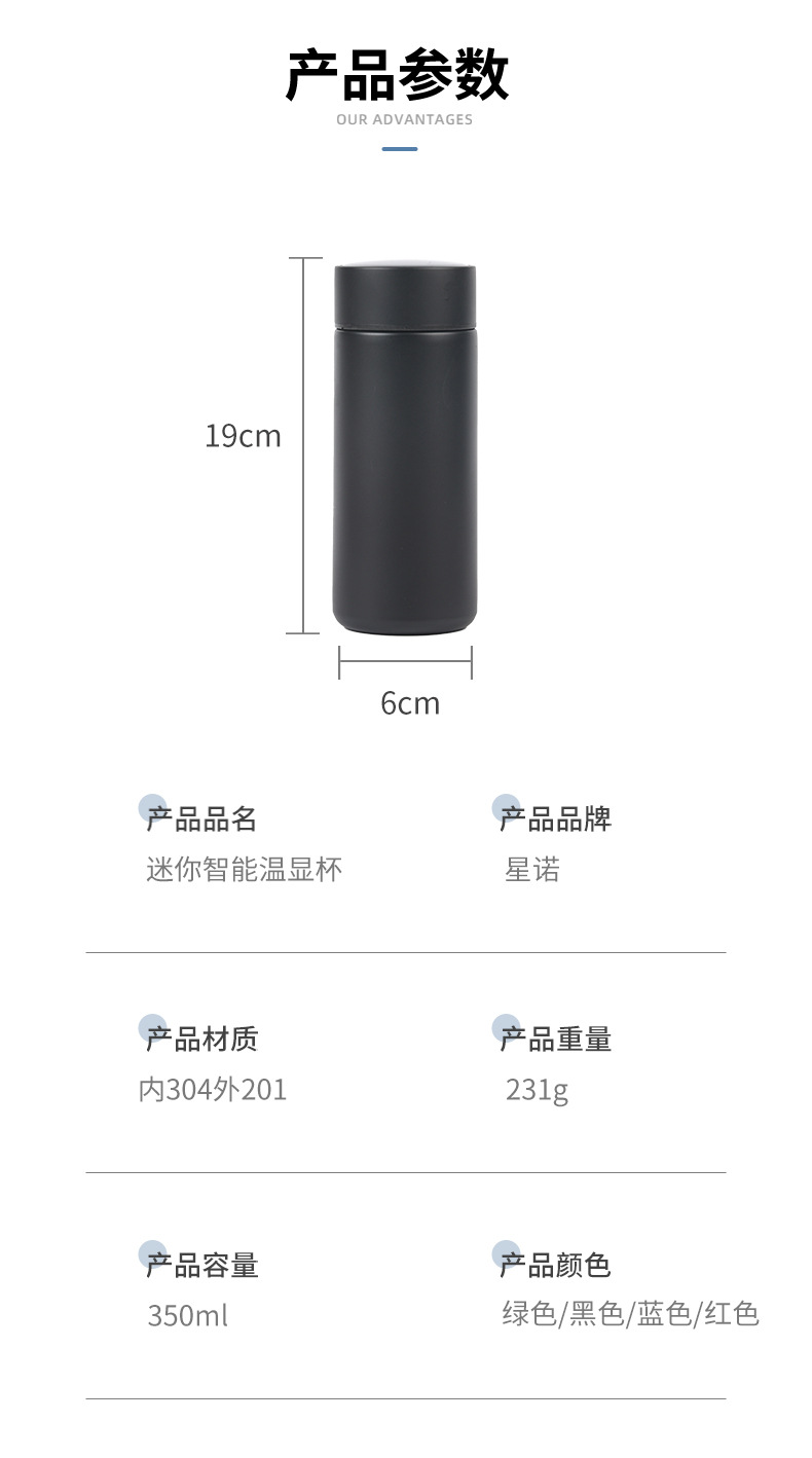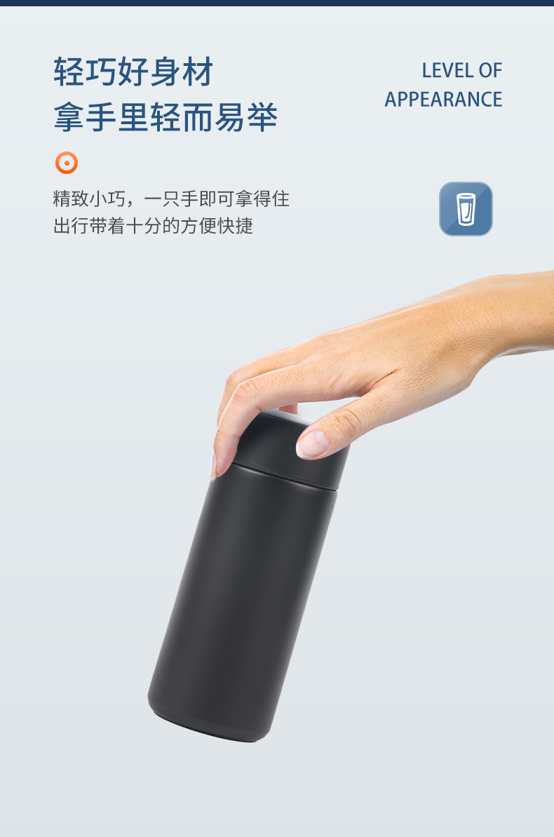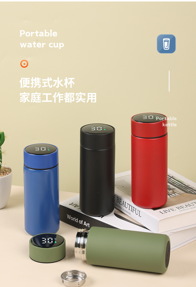 작은 스테인레스 스틸 보온병 컵 스마트 디스플레이 온도 미니 포켓 컵 높은 색상 가치 차 물 분리 학생 컵